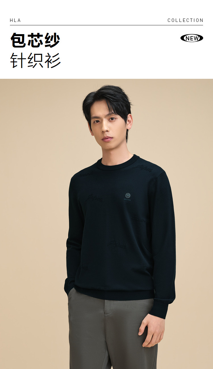 【包芯纱】春秋圆领水洗纯色保暖字母小标男士针织衫 822472