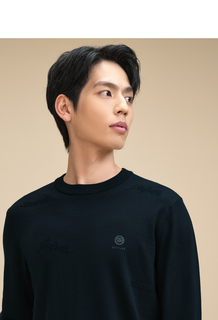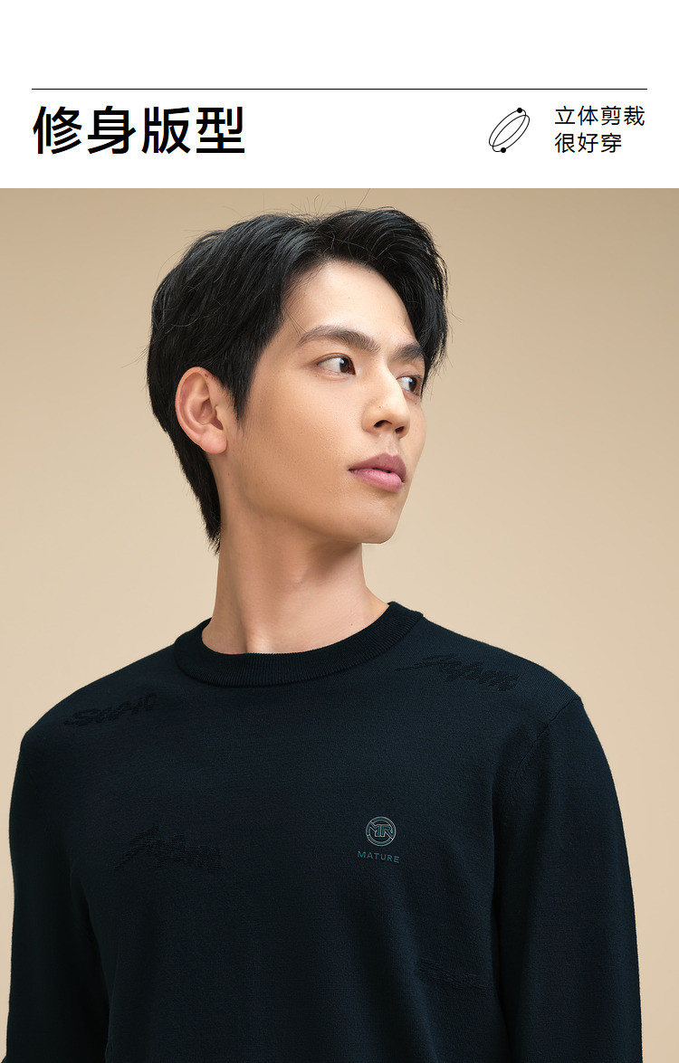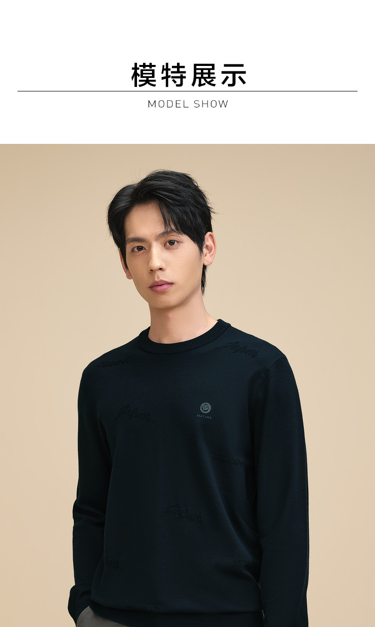 商品名称:【包芯纱】春秋圆领水洗纯色保暖字母小标男士针织衫 822472