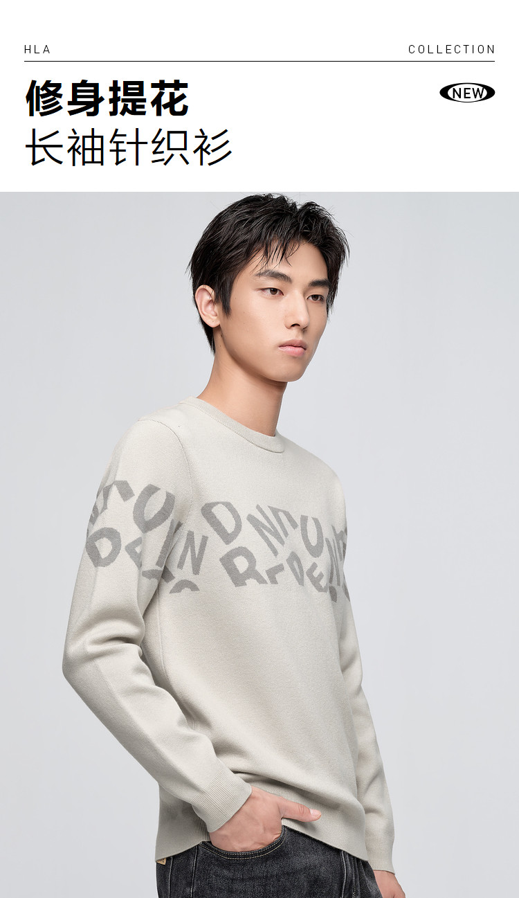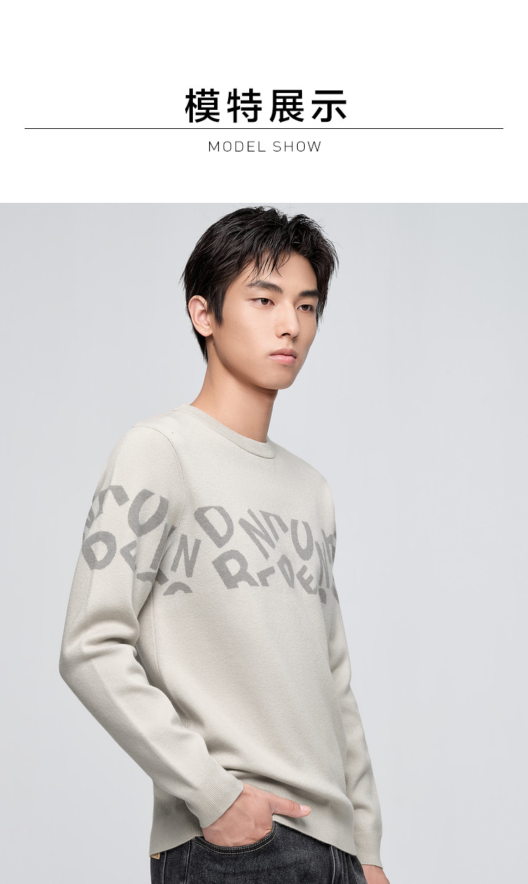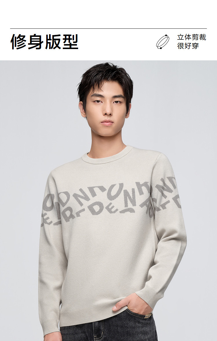 商品名称:【字母提花】春秋修身圆领套头中弹男士长袖针织衫 202632