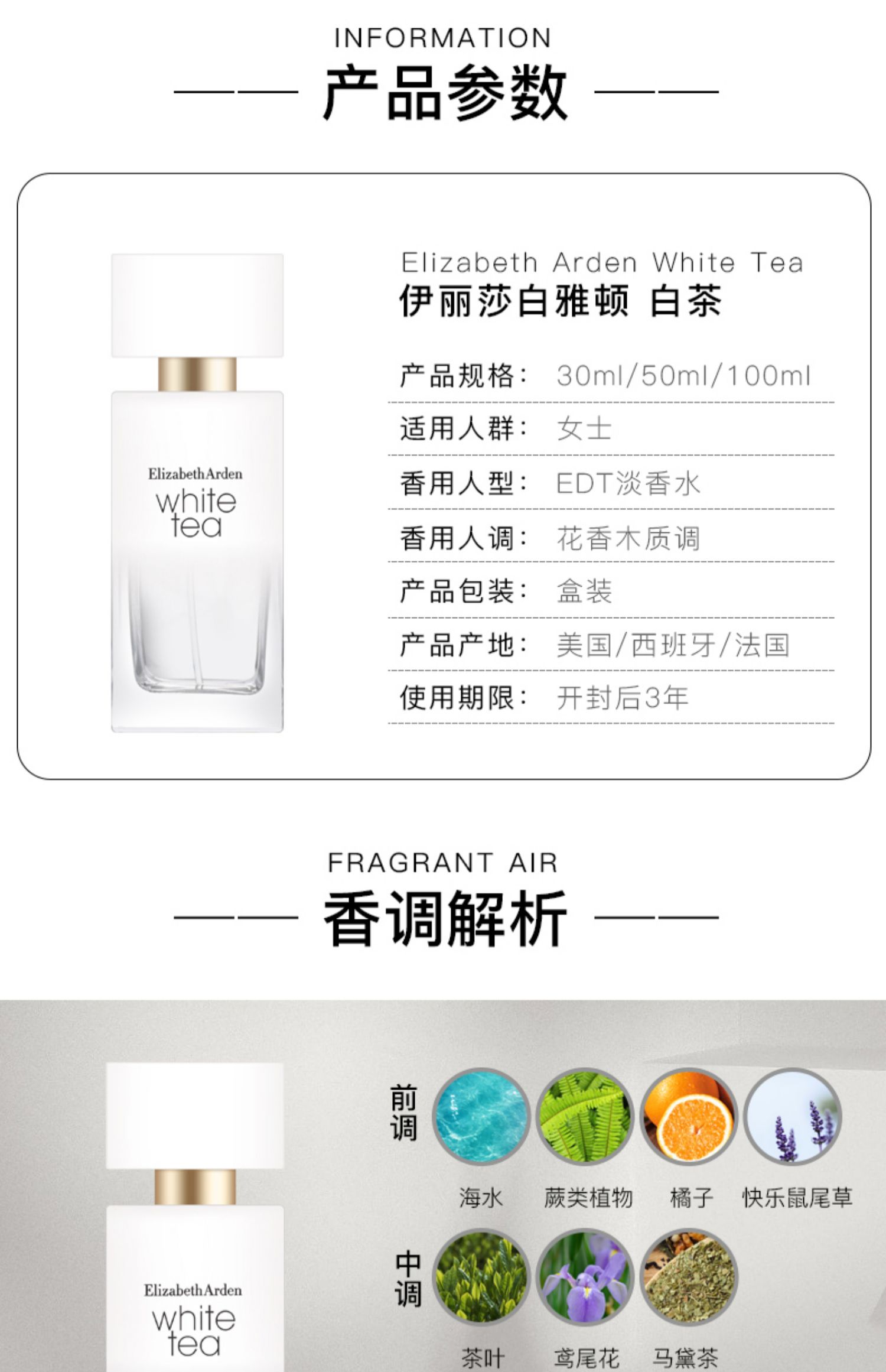 商品名称:伊丽莎白雅顿 白茶香水经典清新淡雅持久留香女淡香水花香调EDT 30ml/50ml/100ml