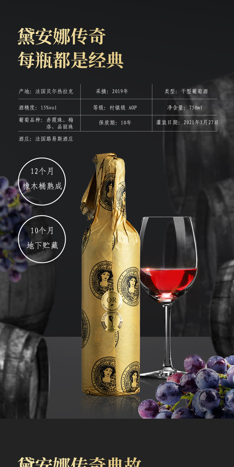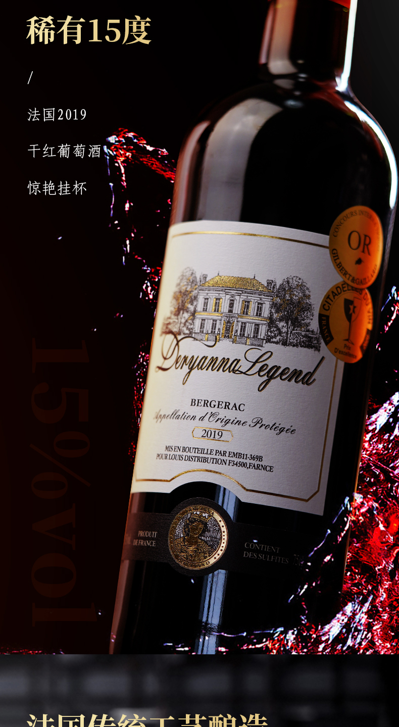 商品名称:【买一送一】法国进口15度黛安娜传奇干红葡萄酒750ml*6瓶 送卡莉娅干红6瓶共两件12瓶
