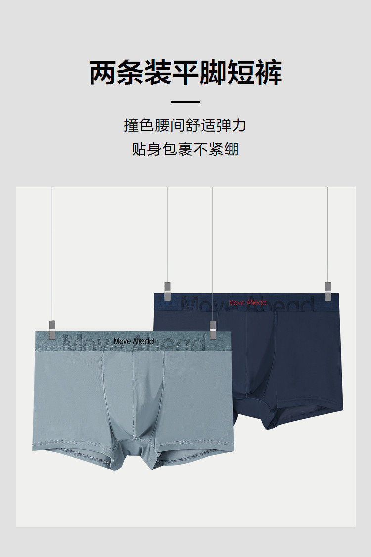 商品名称:【2条装】撞色腰间舒适弹力针织休闲透气男士平脚短裤内裤 833352