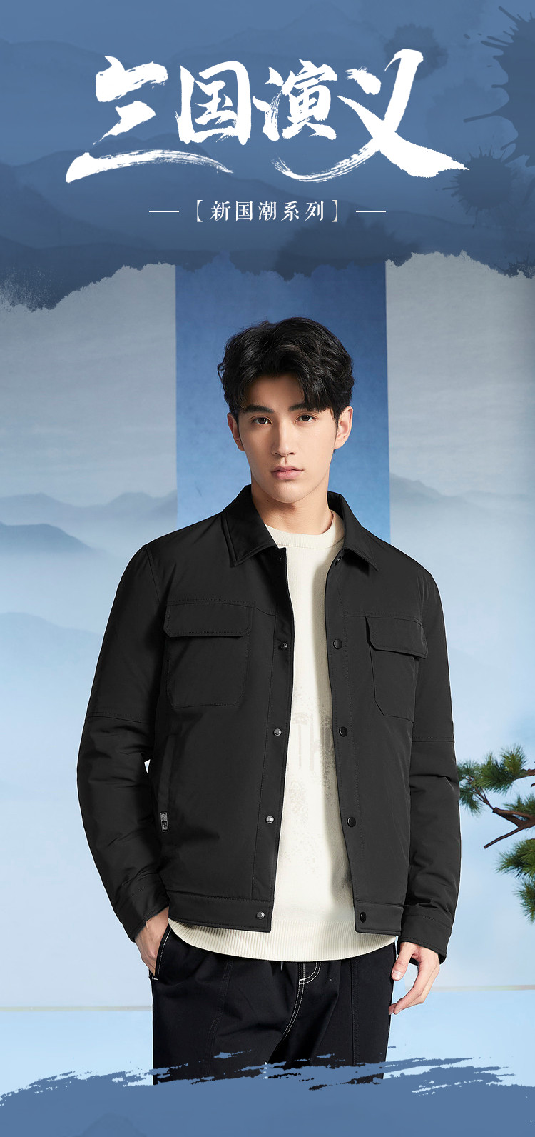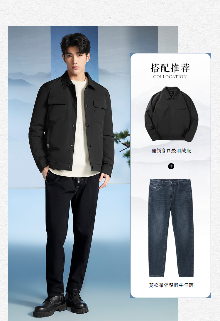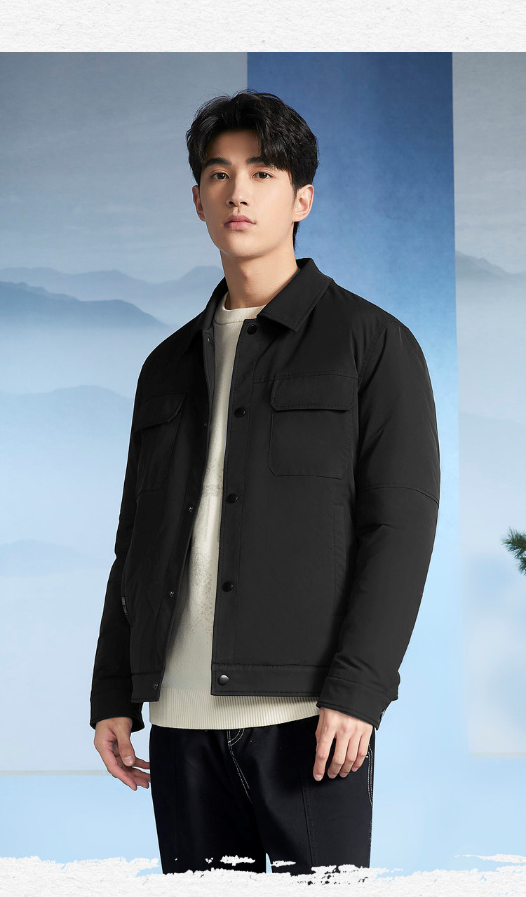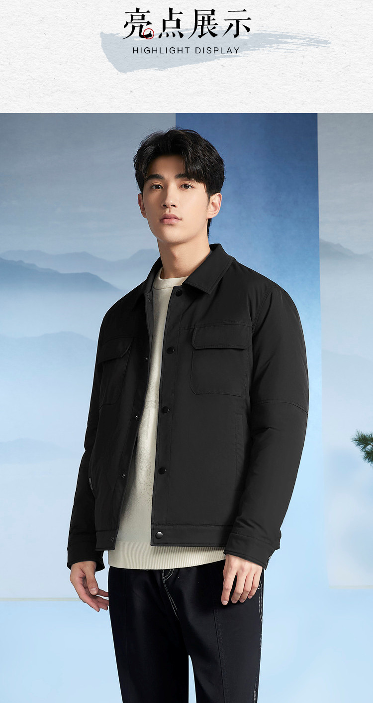 商品名称:【三国演义】冬季热销防钻绒翻领多口袋男士轻薄羽绒服 701896