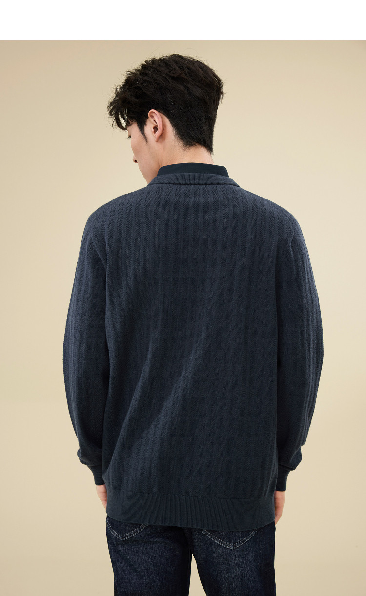 商品名称:【轻商务经典系列】春秋热销双领刺绣条纹男士针织衫 133960