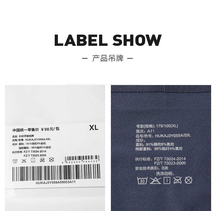 商品名称:【3条装】抗菌透气柔软弹力男士针织平脚短裤内裤 226248