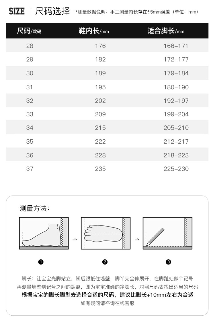 鞋内长(mm)