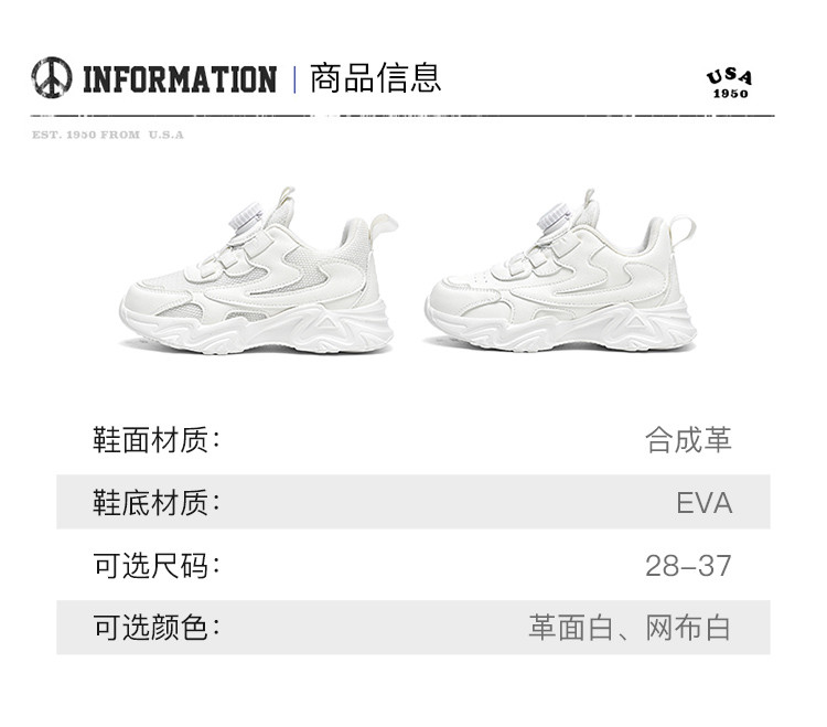 商品名称:【旋转扣小白鞋】秋季新款中大童百搭休闲舒适儿童运动鞋男女童鞋 762845