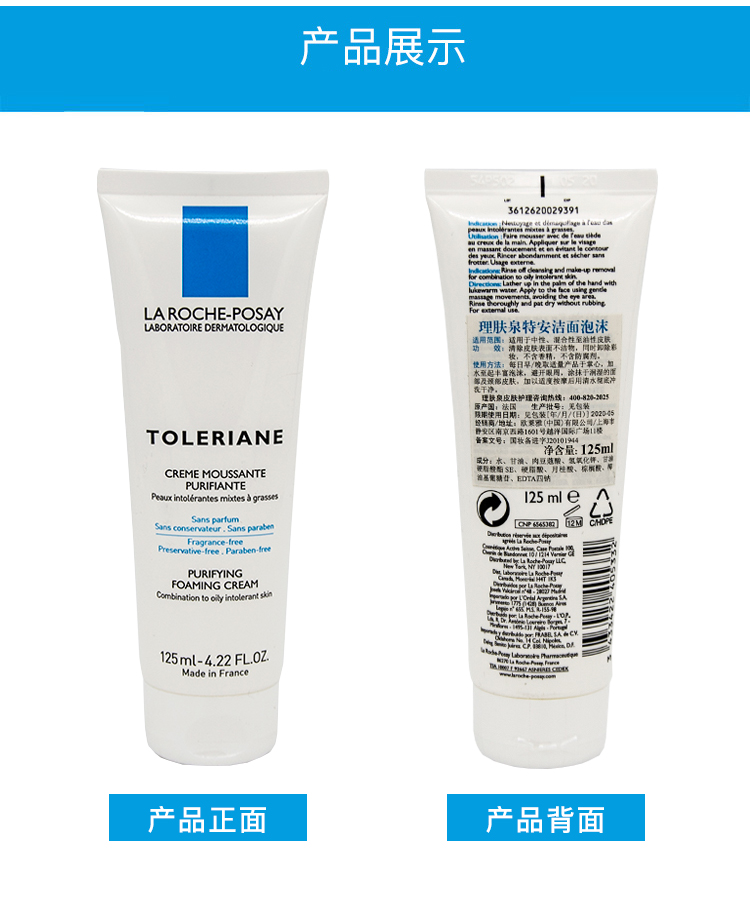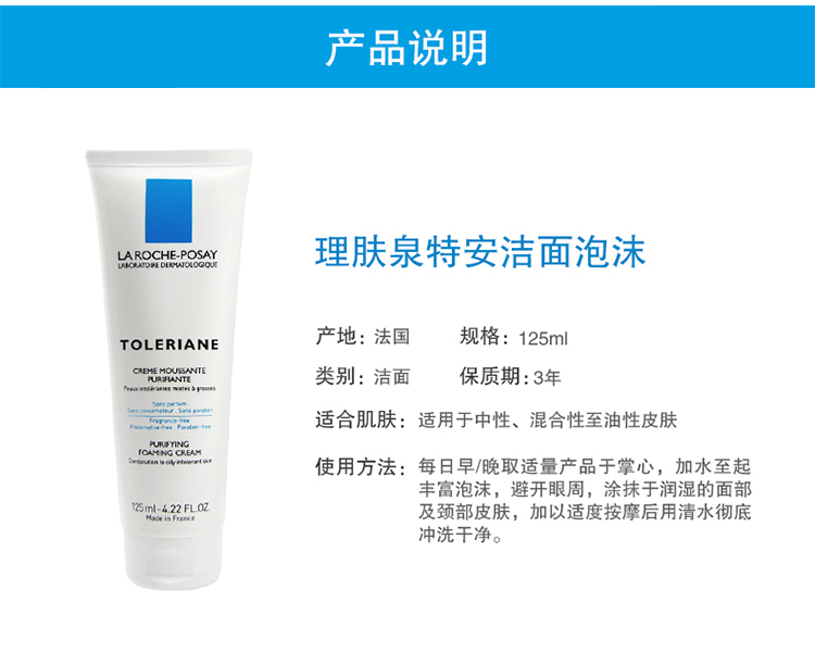商品名称:理肤泉特安洁面泡沫125ml