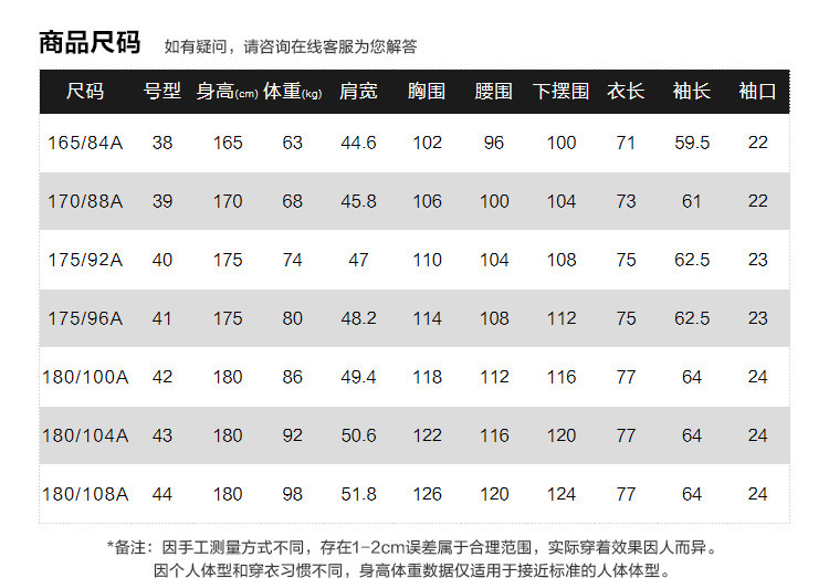 | 尺码 | 衣长(cm) | 肩宽(cm) | 腰围(cm) | 袖长(cm) | 胸围(cm) | 下摆围(cm) | 号型 |