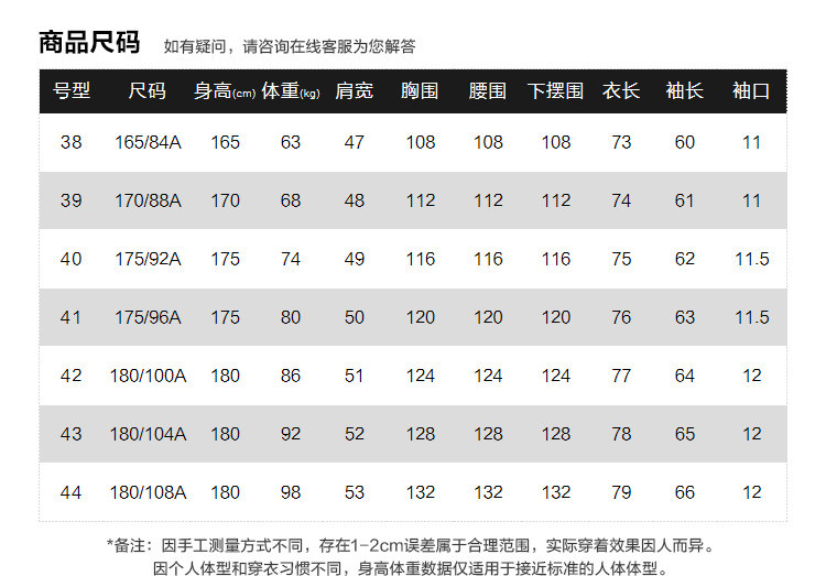 | 尺码 | 衣长(cm) | 肩宽(cm) | 腰围(cm) | 袖长(cm) | 领围(cm) | 胸围(cm) | 下摆围(cm) | 号型 |
