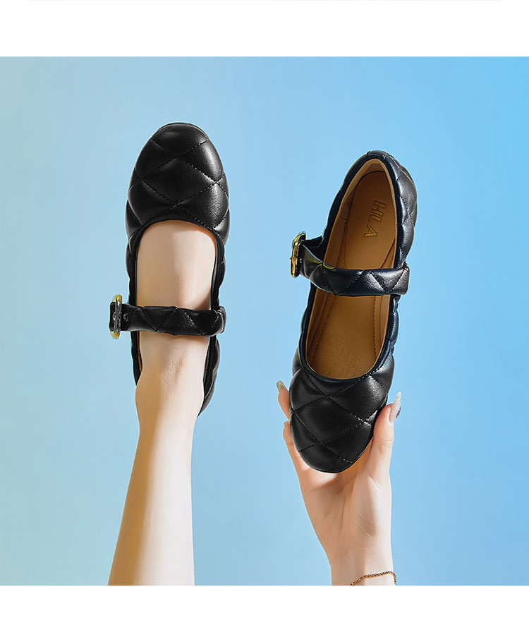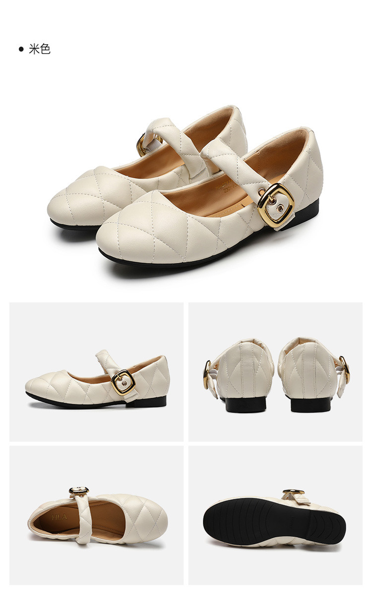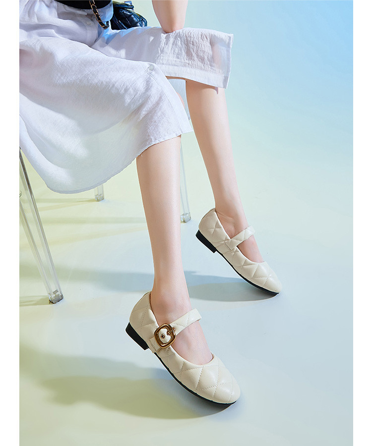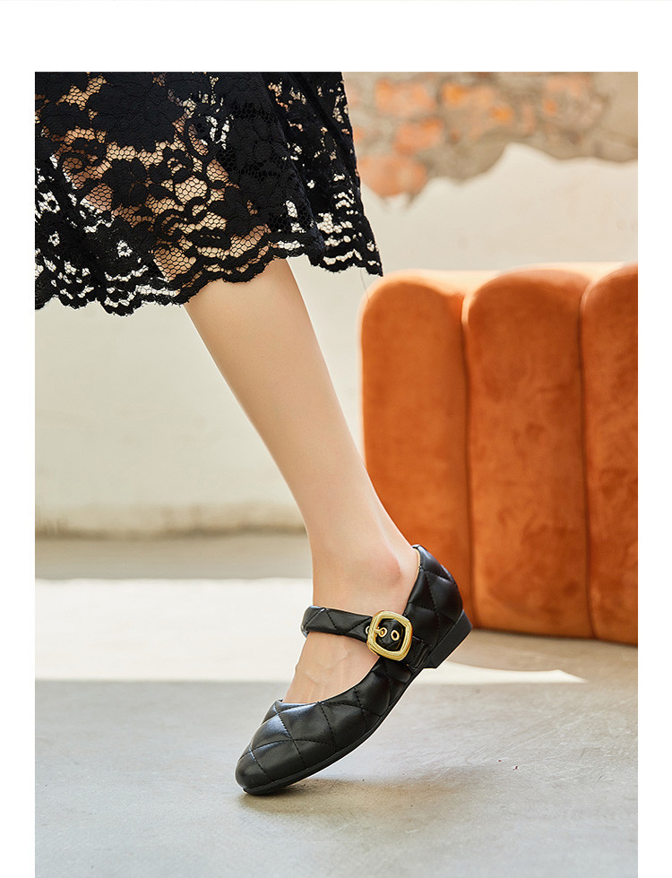 女鞋女士单鞋单鞋复古菱格小香风奶奶鞋粗跟单鞋女芭蕾鞋 148751