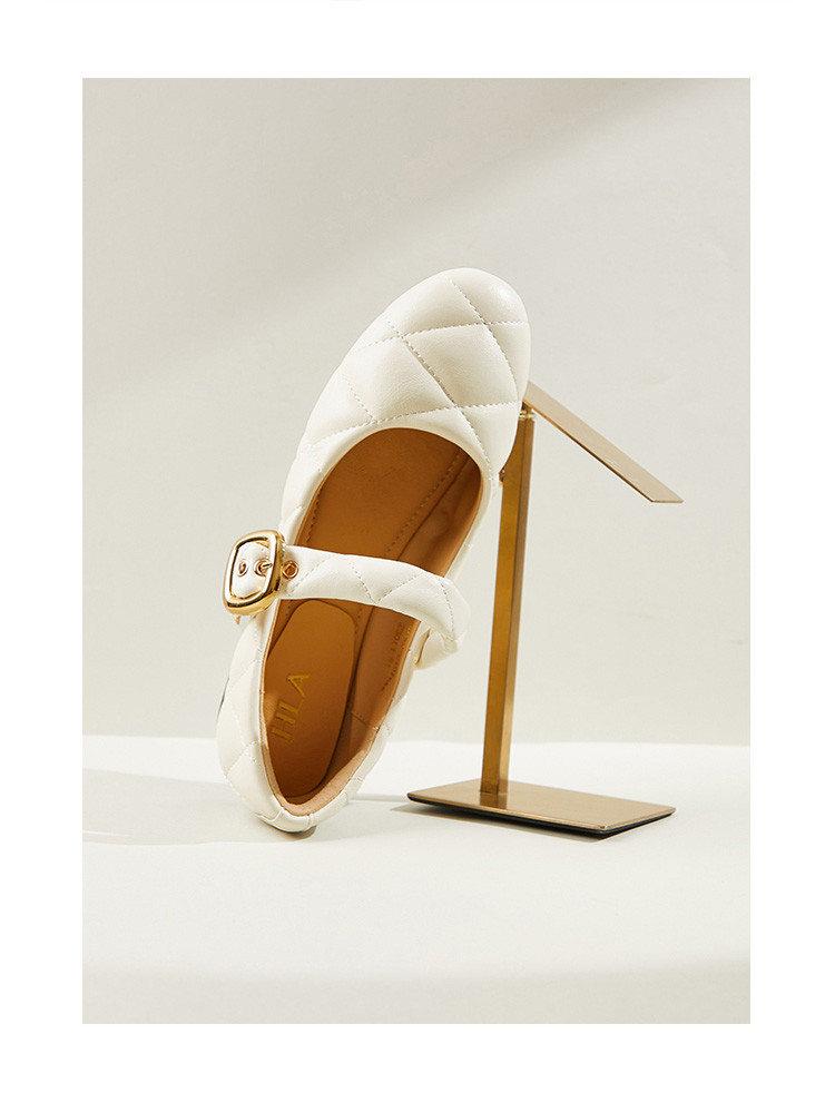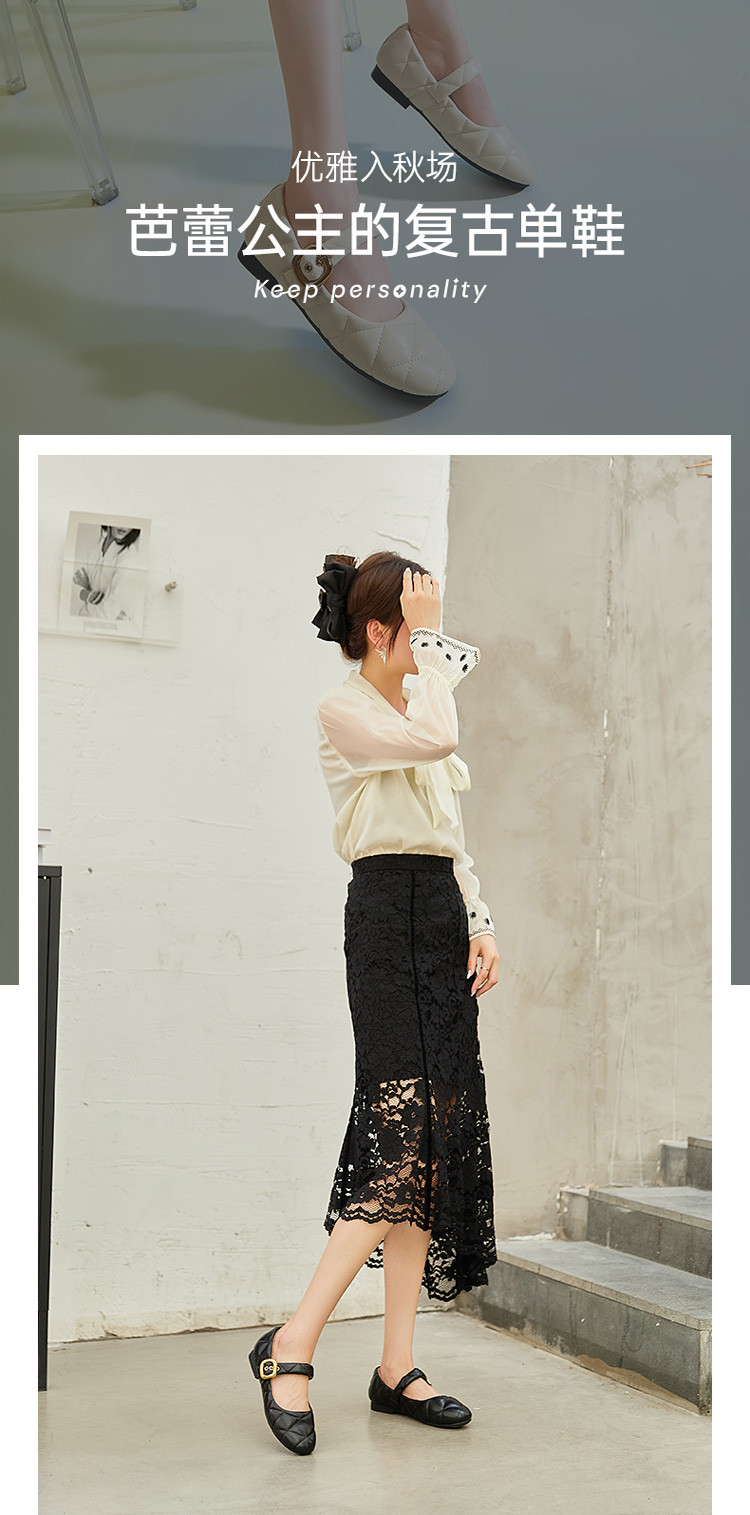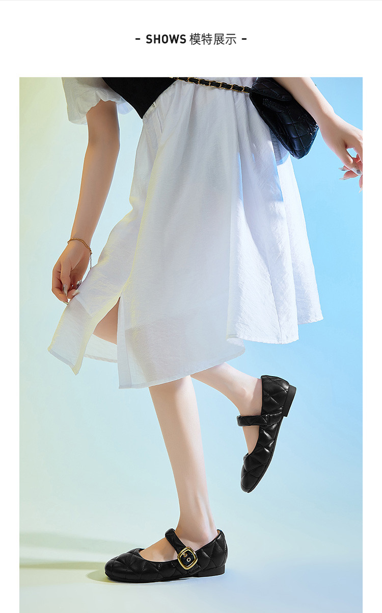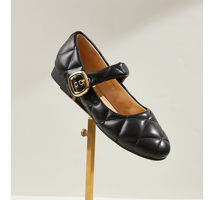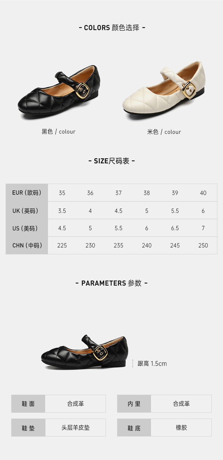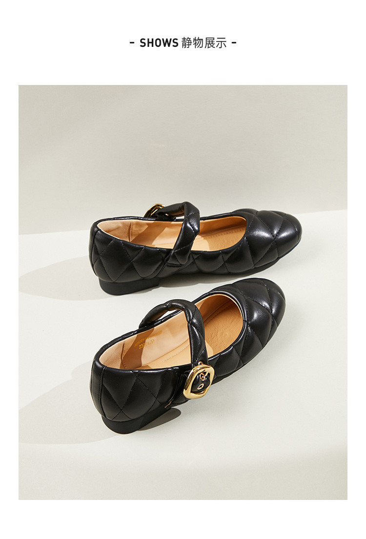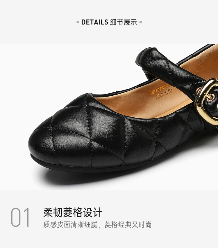 商品名称:女鞋女士单鞋单鞋复古菱格小香风奶奶鞋粗跟单鞋女芭蕾鞋 148751