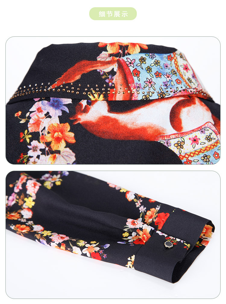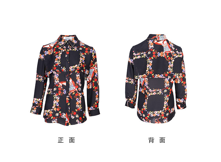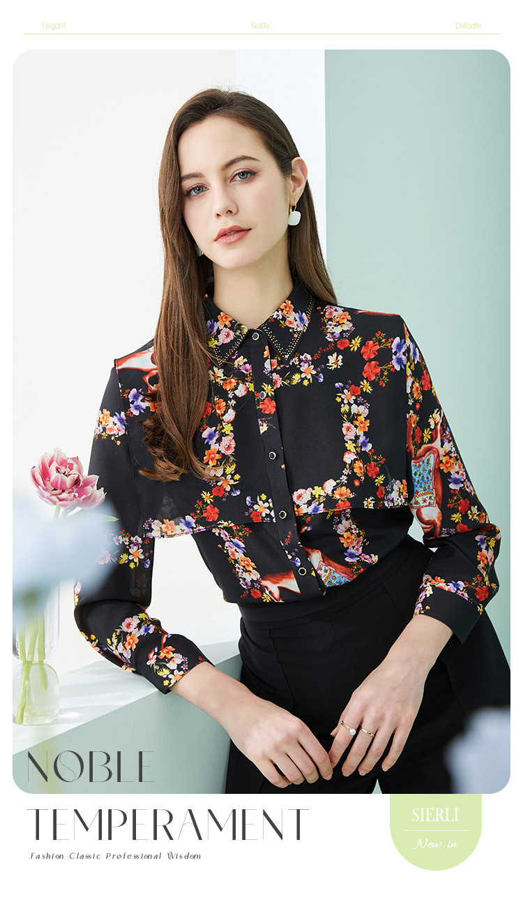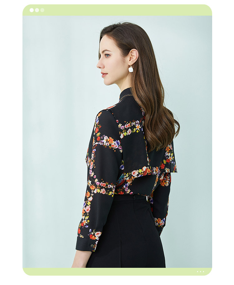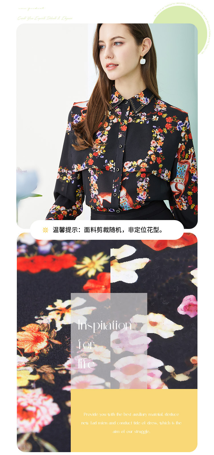 商品名称:商场同款春季复古印花叠层通勤淑女范翻领长袖衬衣 737503