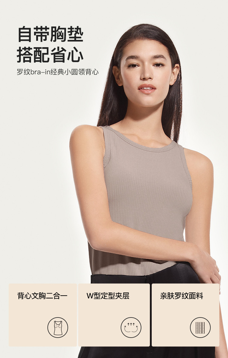商品名称:【凉感带胸垫背心】罗纹吸湿透气一体免穿吊带打底背心内衣女 598720