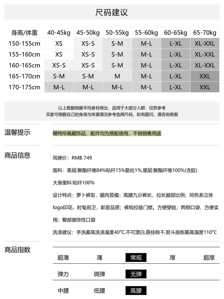 商品名称:【专柜同款】春夏高腰九分印花西装休闲裤女气质百搭时尚 340561