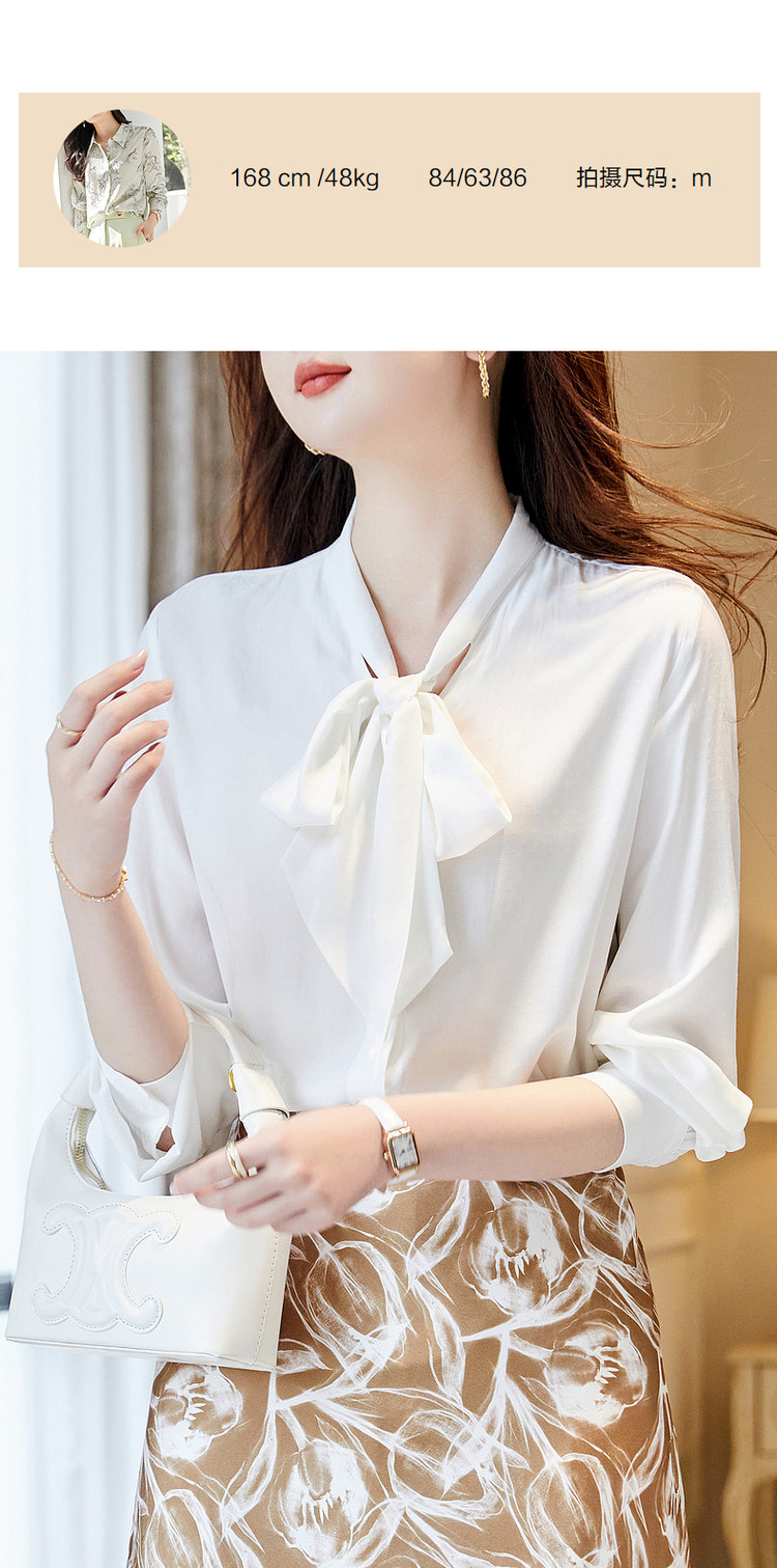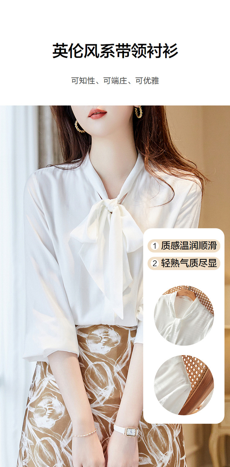 商品名称:【英伦风千鸟格系带衬衫】春秋通勤V领直筒长袖衬衣女装上衣 148737