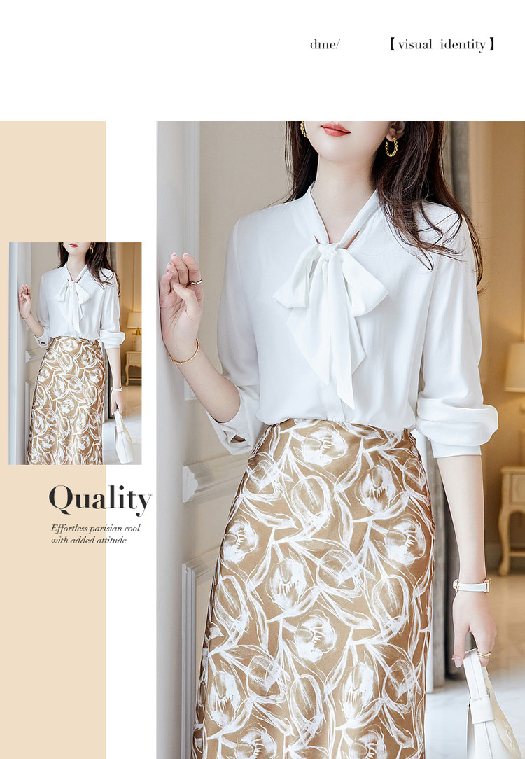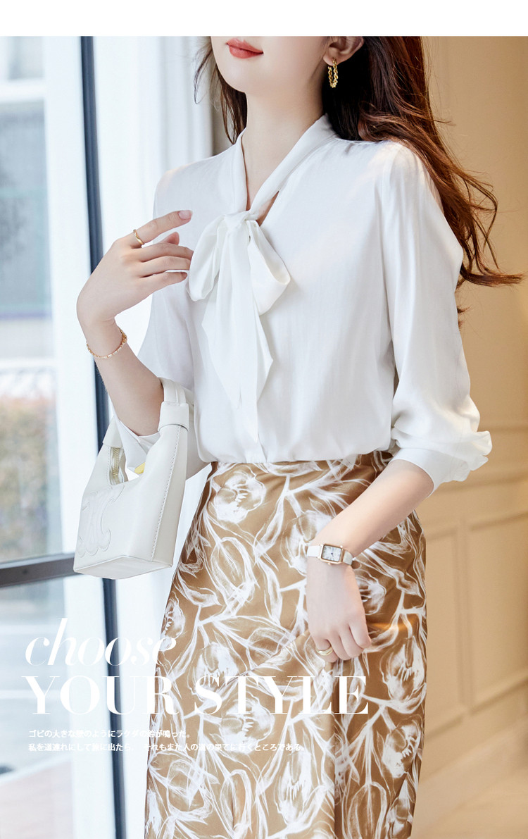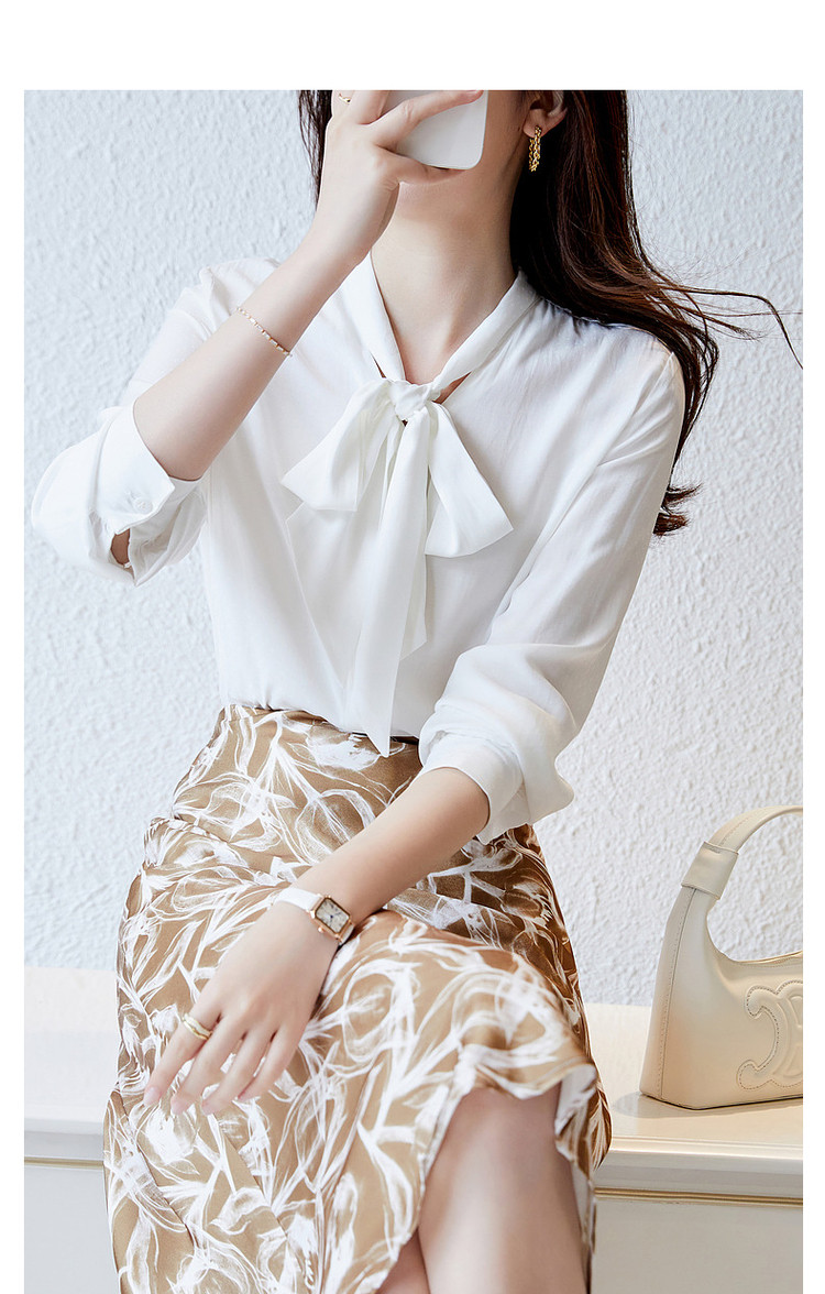 【英伦风千鸟格系带衬衫】春秋通勤V领直筒长袖衬衣女装上衣 148737