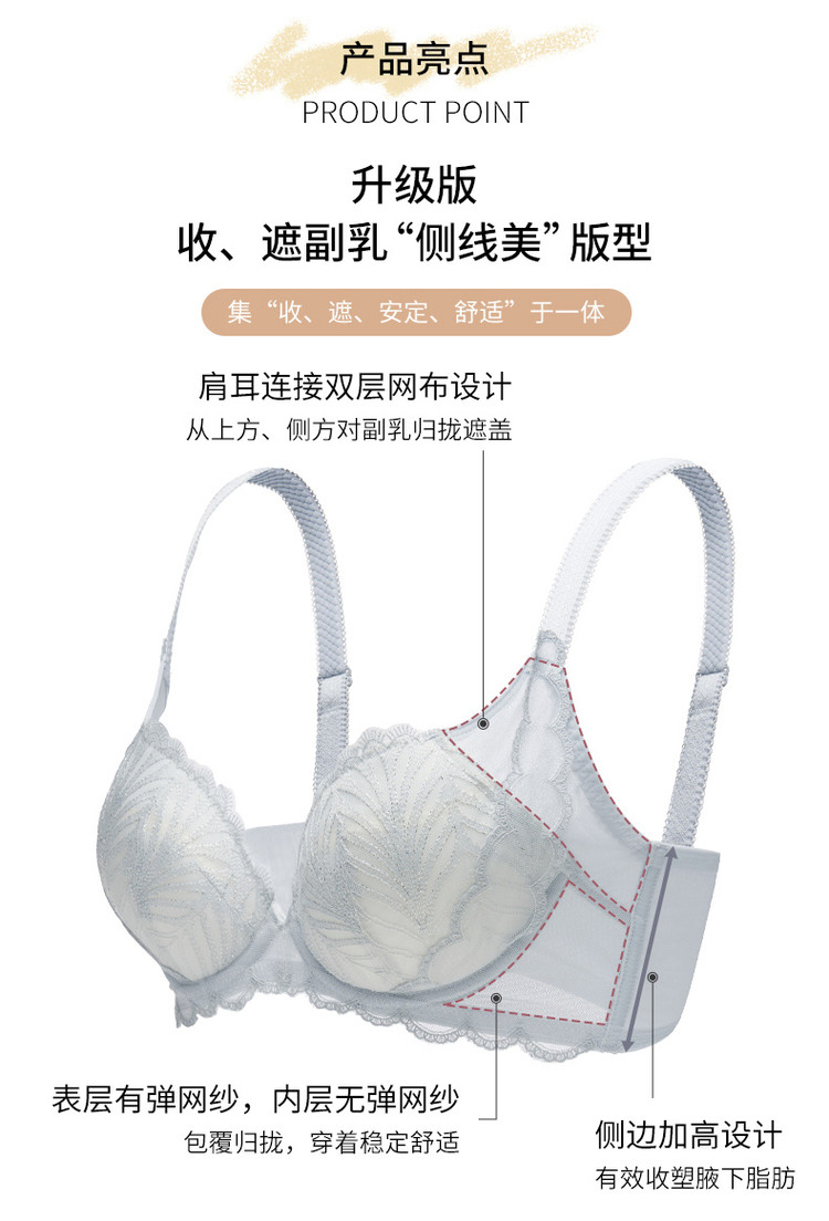 商品名称:【副乳秒消失】薄款宫廷欧若风蕾丝刺绣内衣女聚拢强侧收调整文胸 024773
