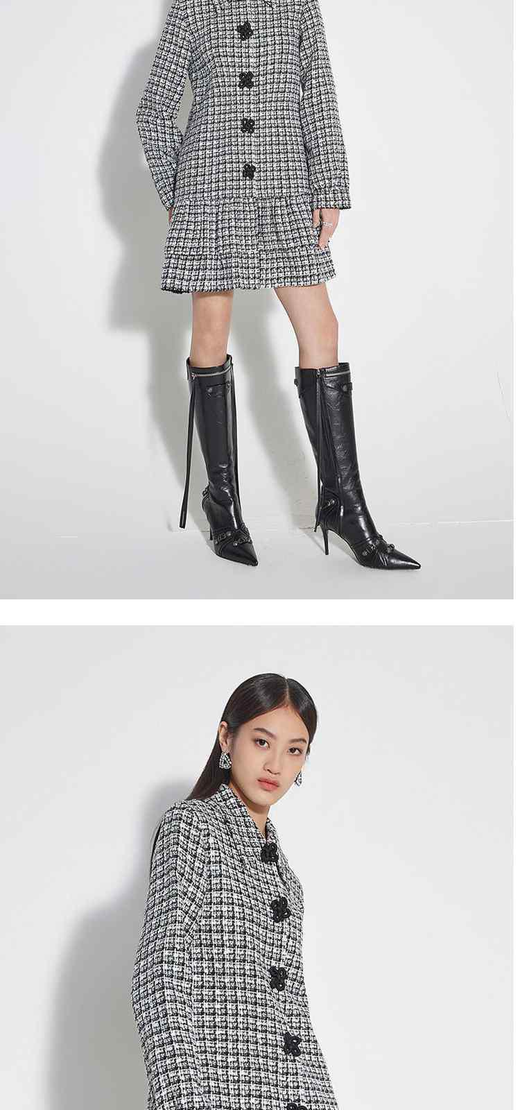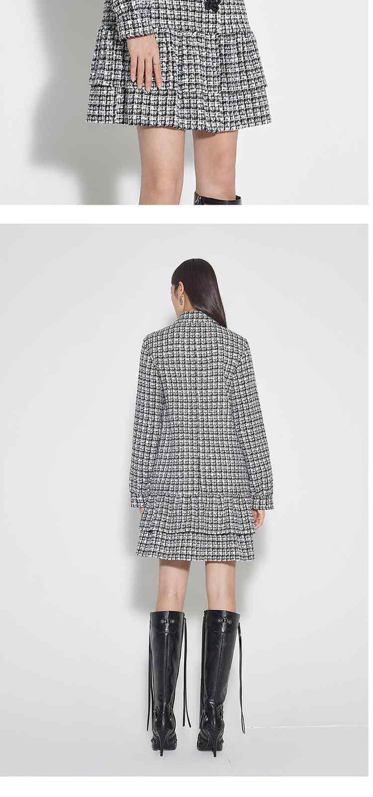 春装 盘扣外套粗花呢小香风连衣裙 323599