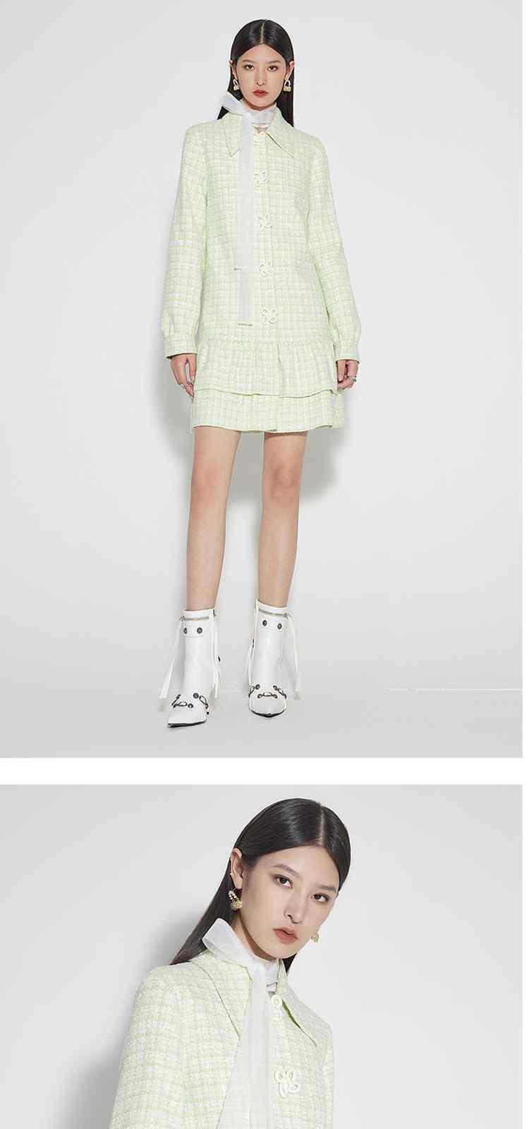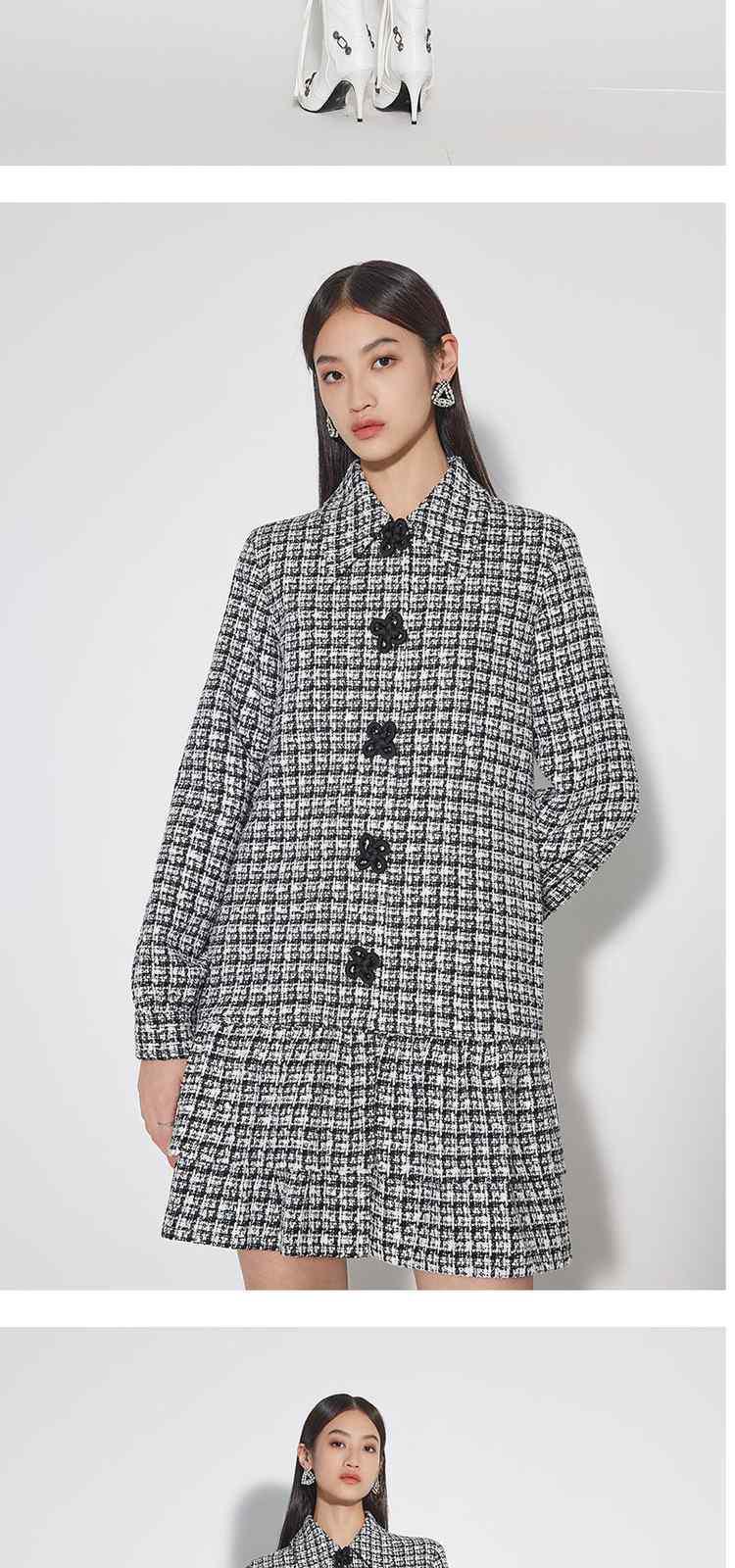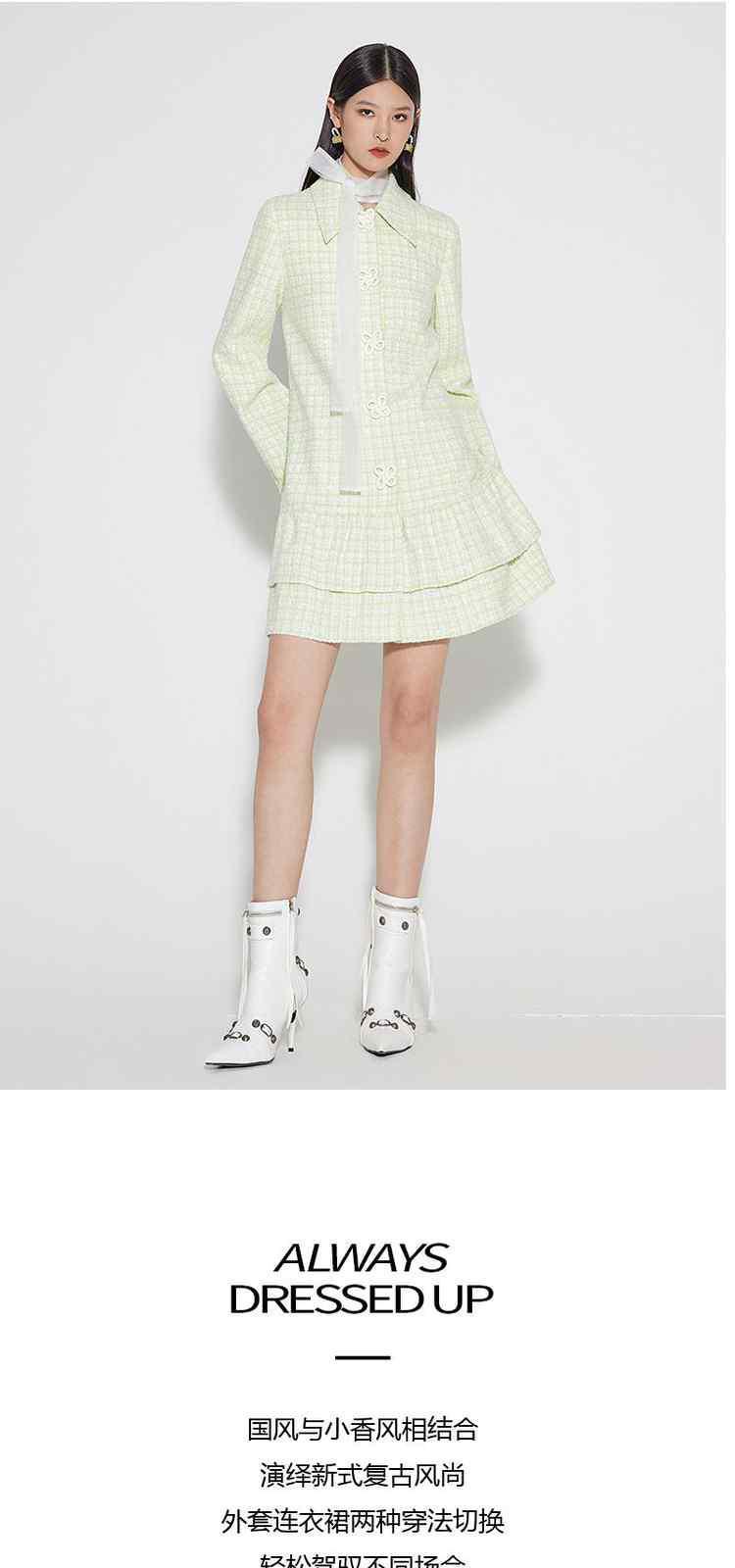 商品名称:春装 盘扣外套粗花呢小香风连衣裙 323599