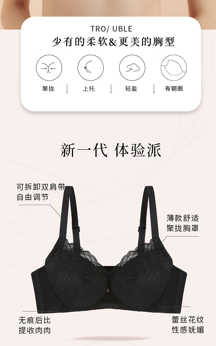 商品名称:【聚拢上托】文胸罩内衣女小胸显大美背上托收副乳防下垂性感蕾丝 618763