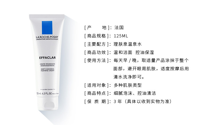 商品名称:理肤泉净肤控油洁面泡沫125ML