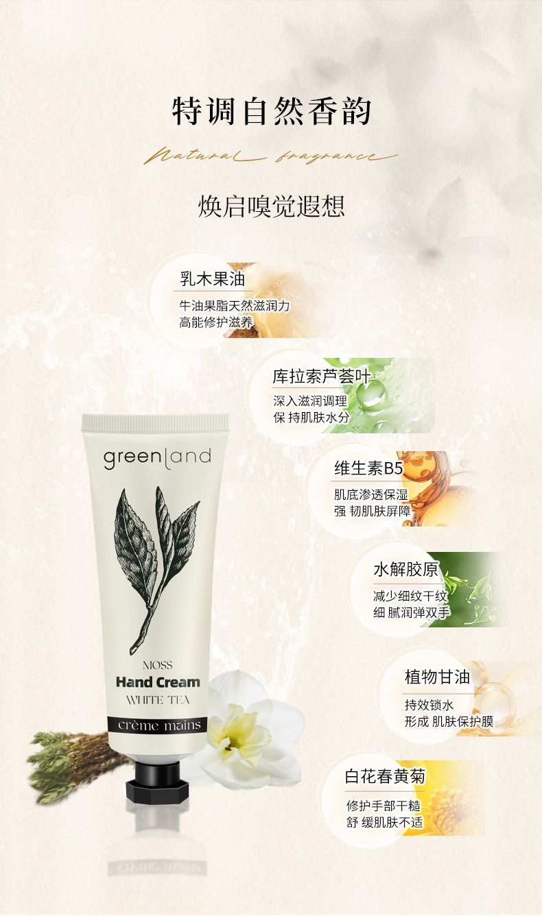 商品名称:Greenland/格兰大地青苔白茶香护手霜75ml