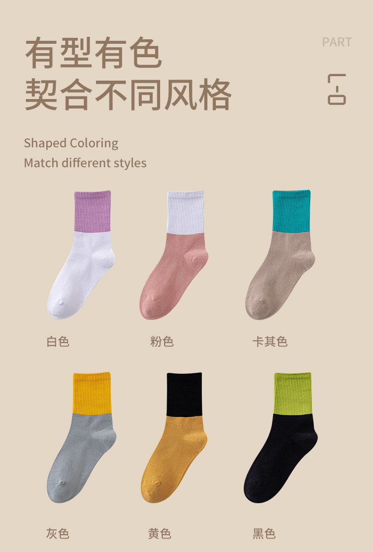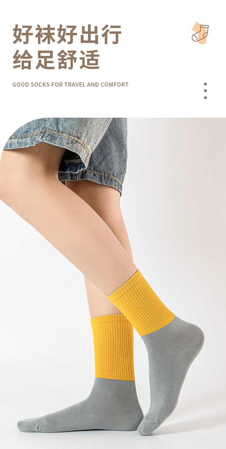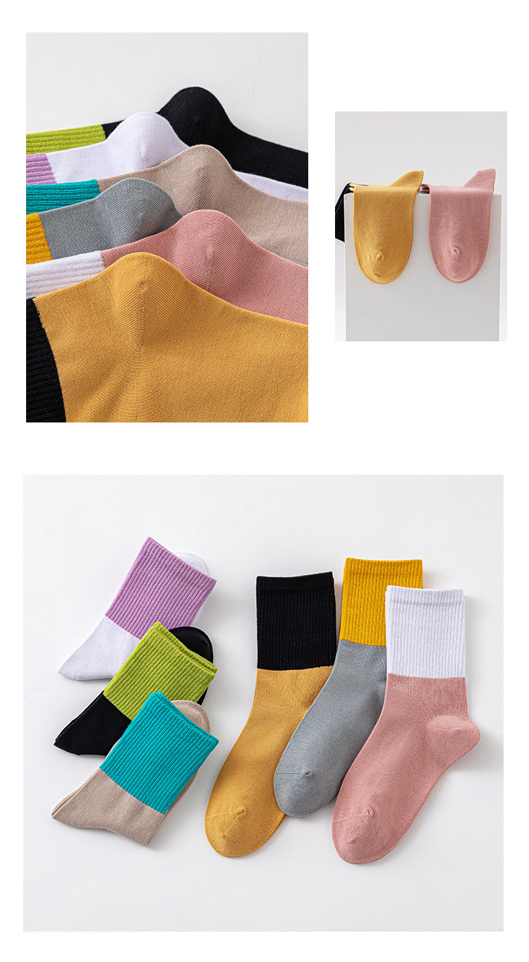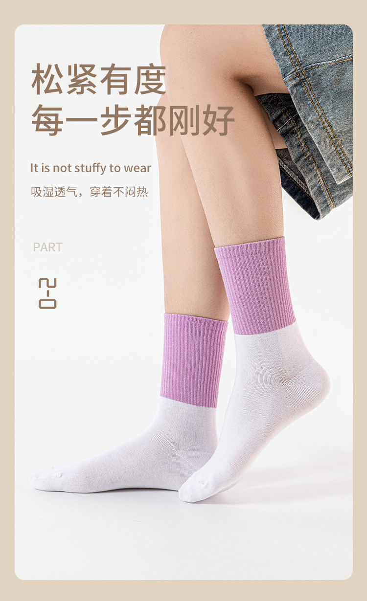 商品名称:【100%棉】3双装女袜春款休闲撞色中筒袜舒适透气百棉袜子 291083