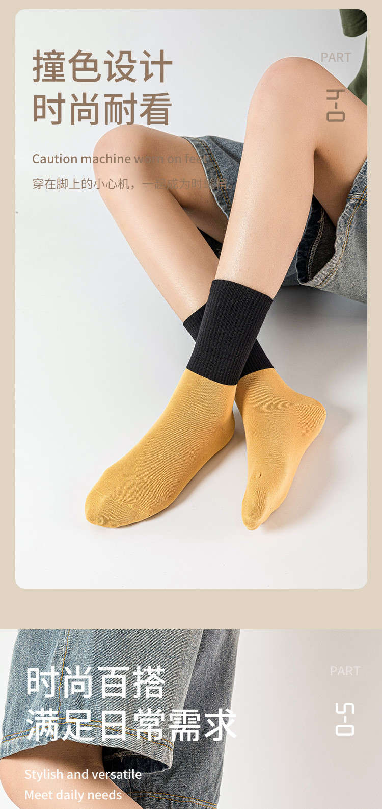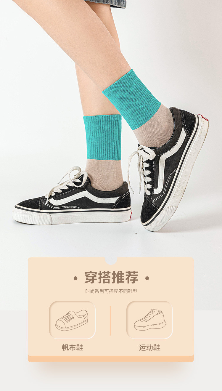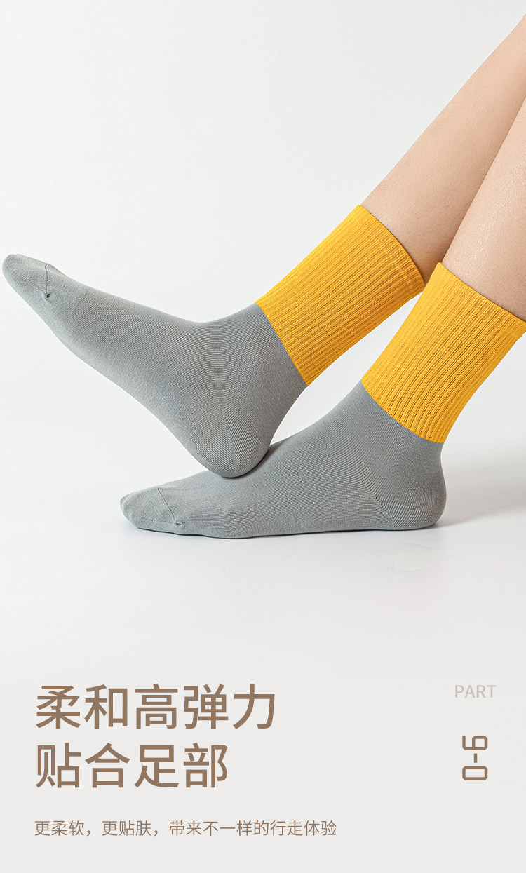 商品名称:【100%棉】3双装女袜春款休闲撞色中筒袜舒适透气百棉袜子 291083