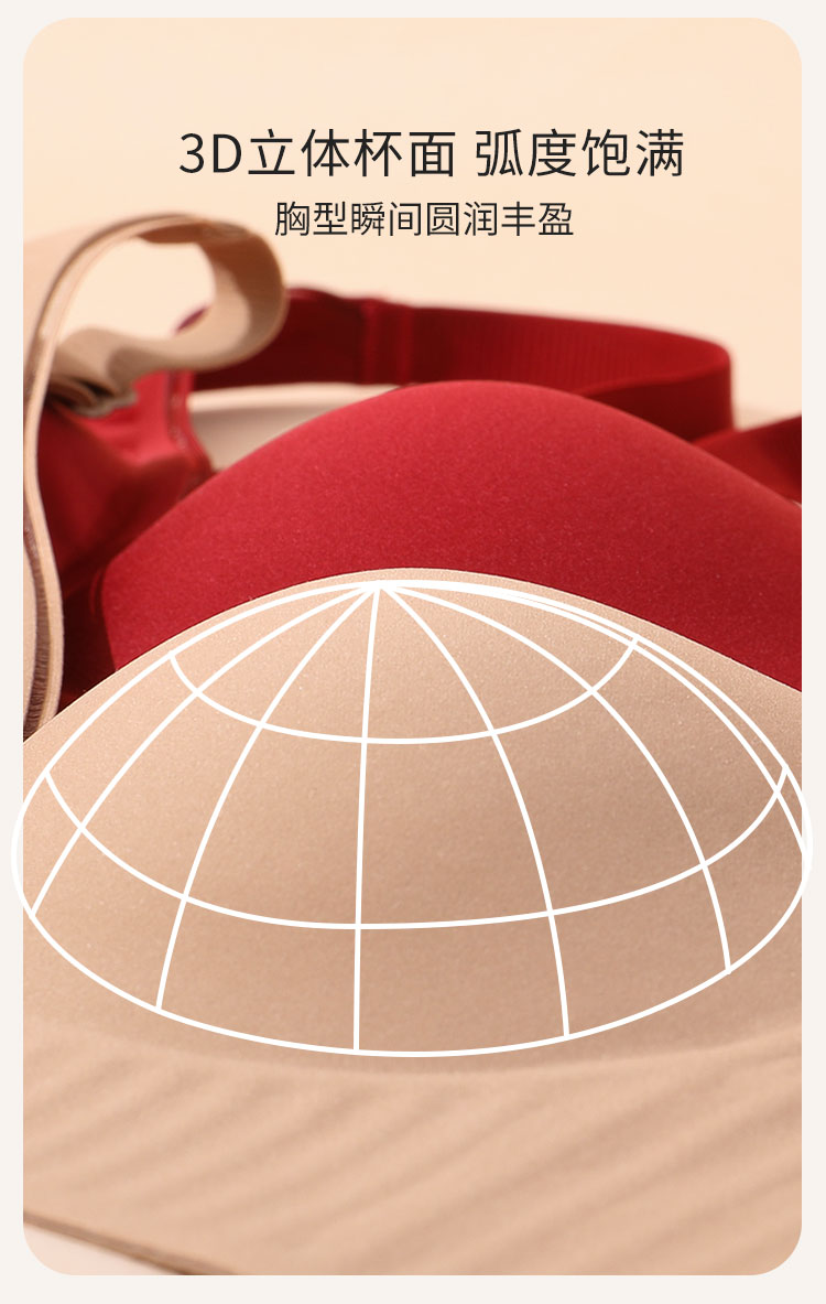 商品名称:气质酒红提拉上托无痕收副乳调整大胸显小内衣女聚拢无钢圈文胸罩 063134