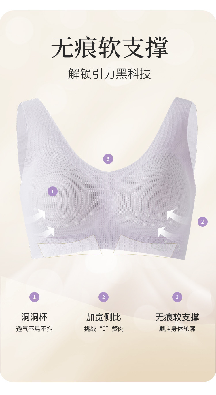 【裸感无痕】文胸内衣女士无钢圈舒适轻盈美背聚拢背心文胸一体式 536011