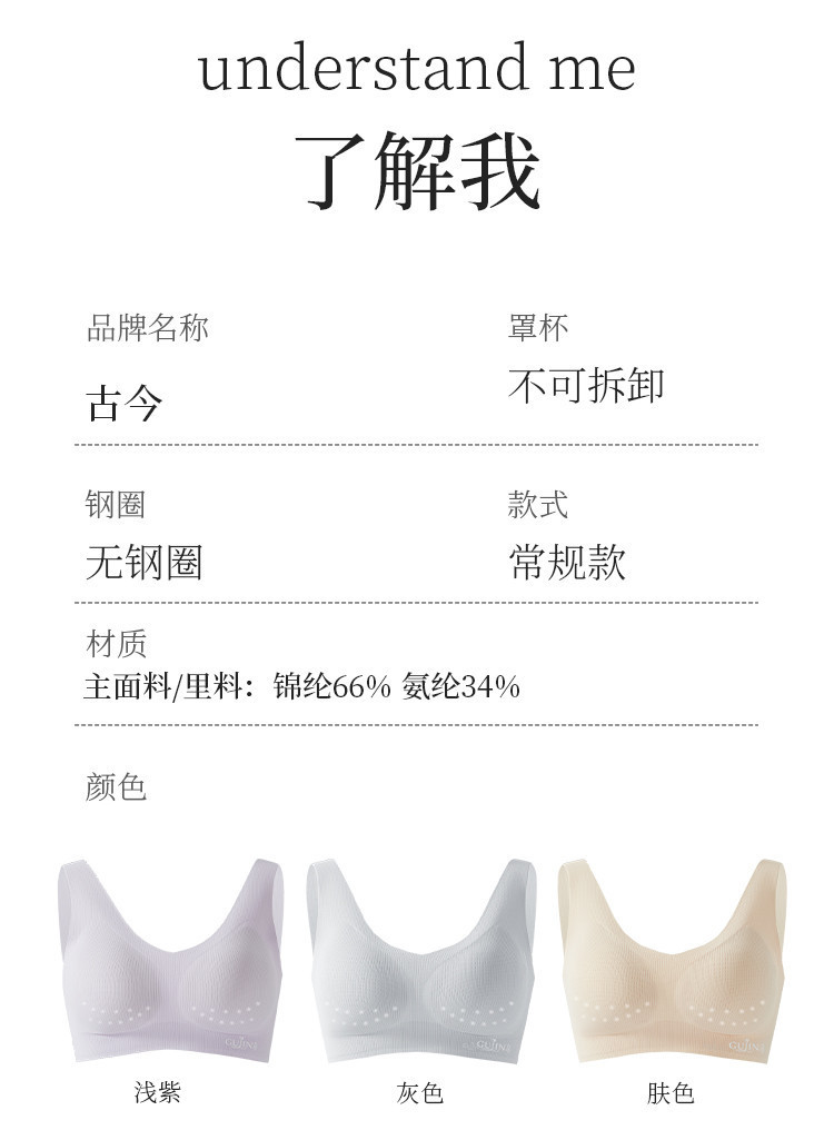 商品名称:【裸感无痕】文胸内衣女士无钢圈舒适轻盈美背聚拢背心文胸一体式 536011
