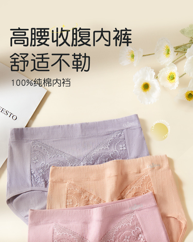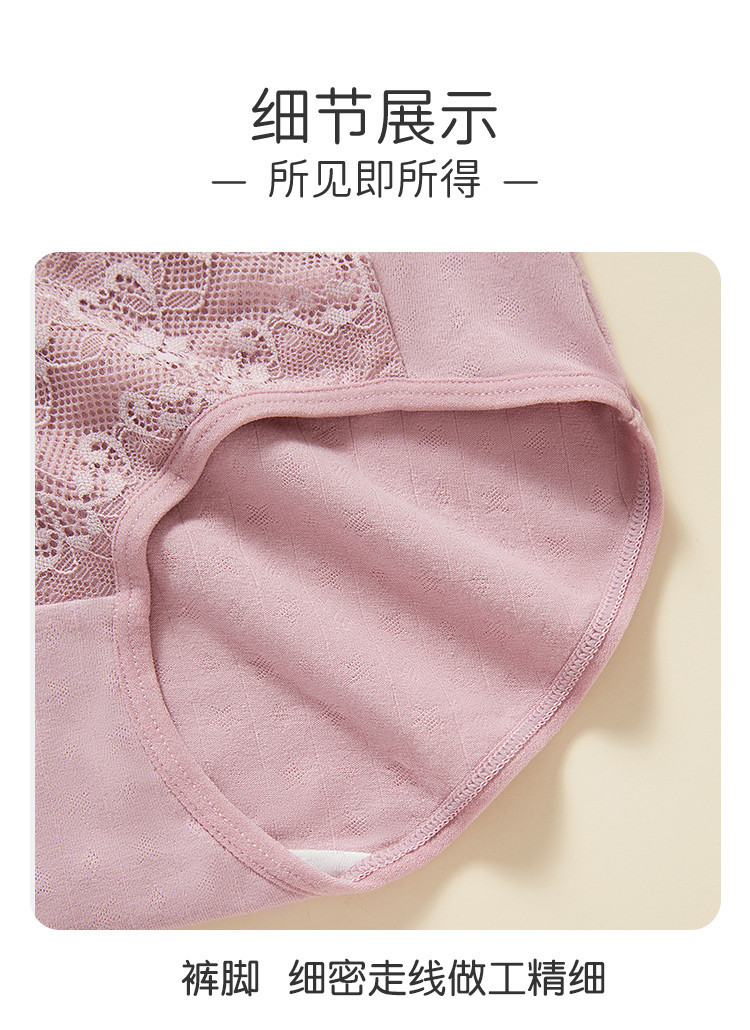 商品名称:【纯棉抑菌裆】中高腰三角裤收腹提臀柔软性感蕾丝女士短裤衩女 543883