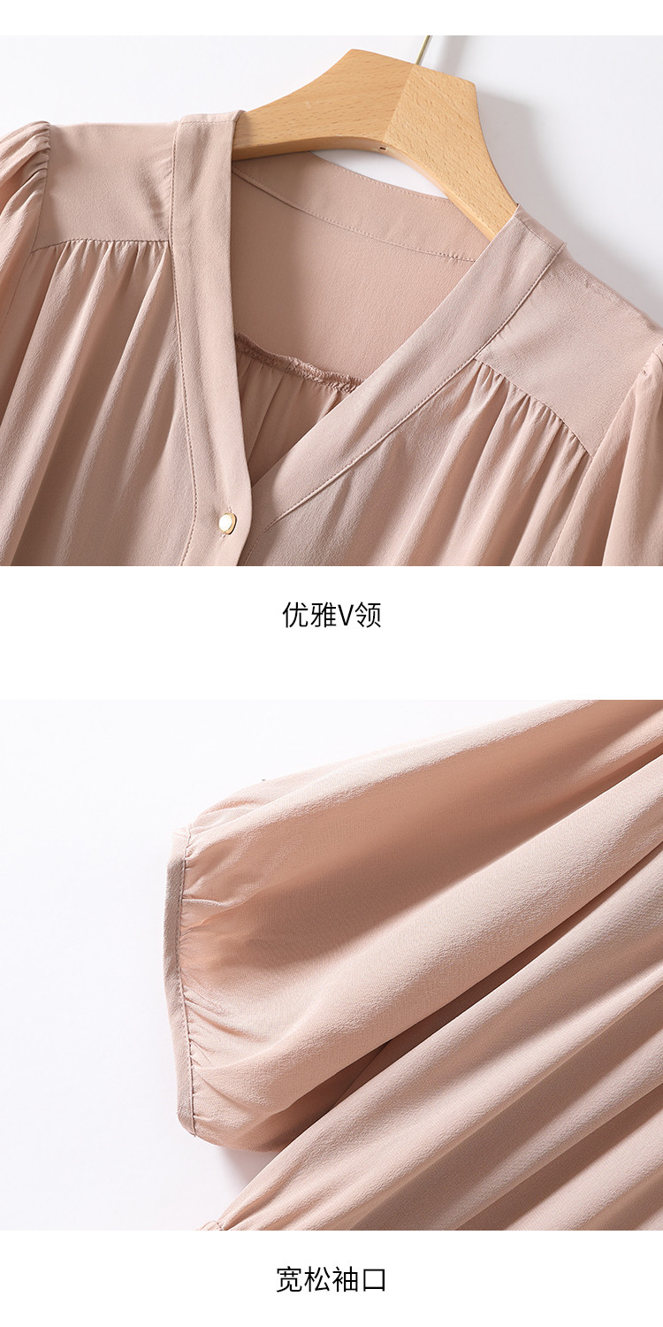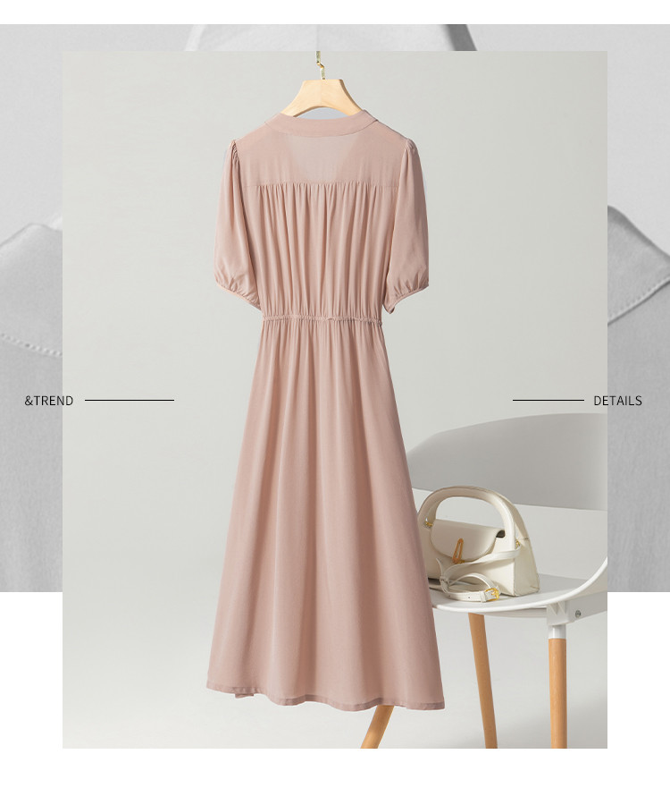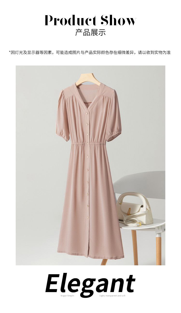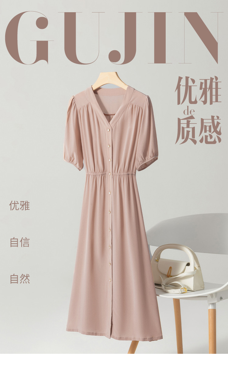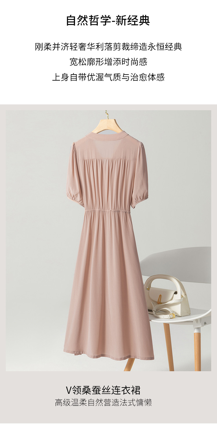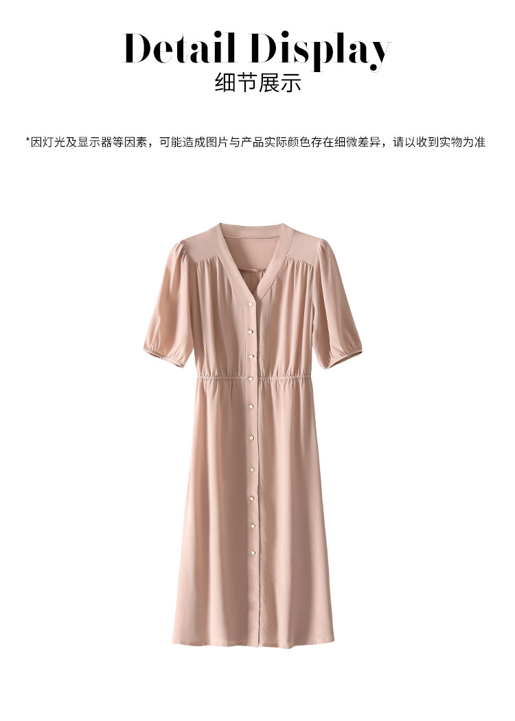 商品名称:【100%桑蚕丝】欧若风V领纯色百搭纽扣真丝连衣裙女夏 287315