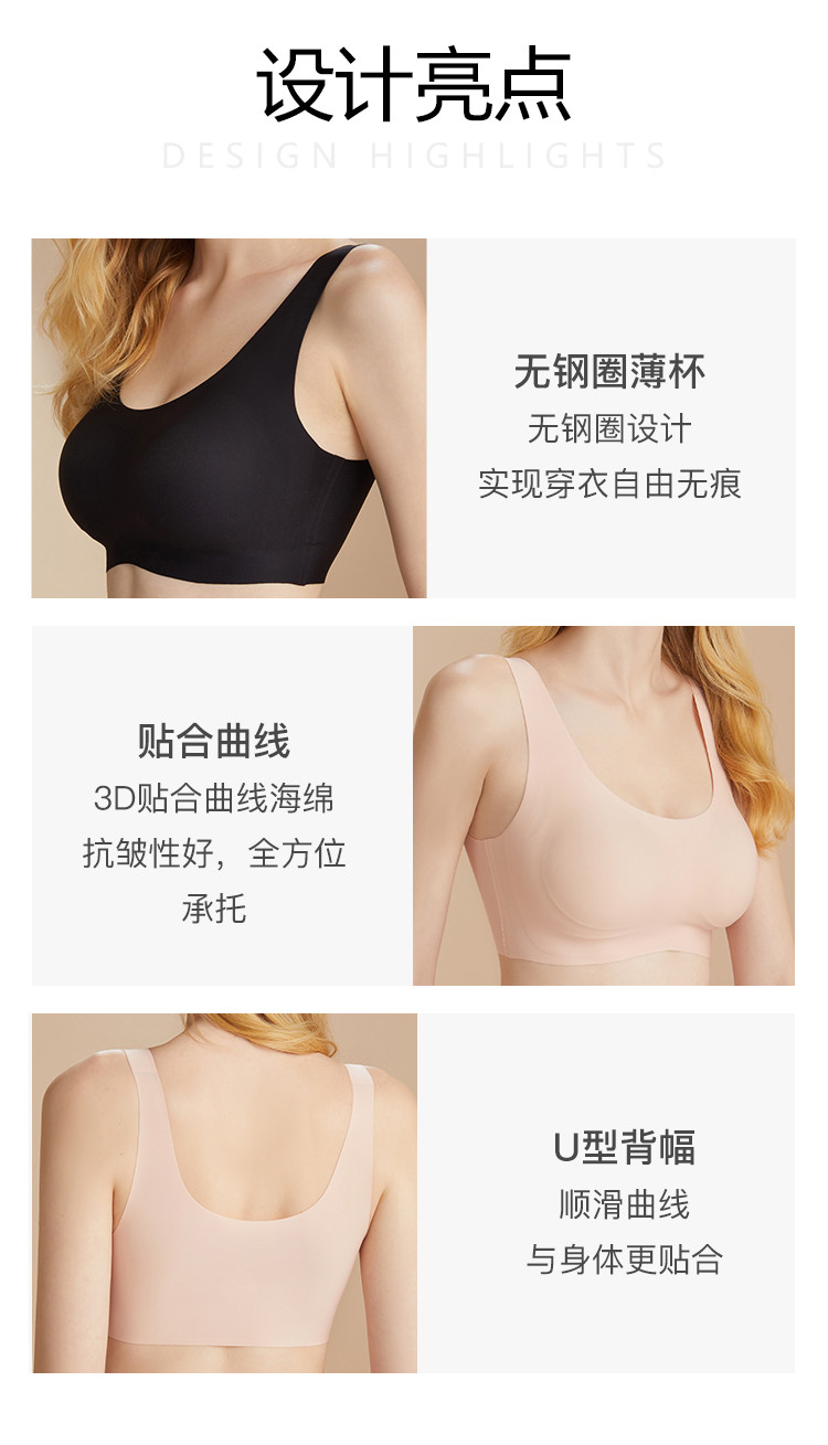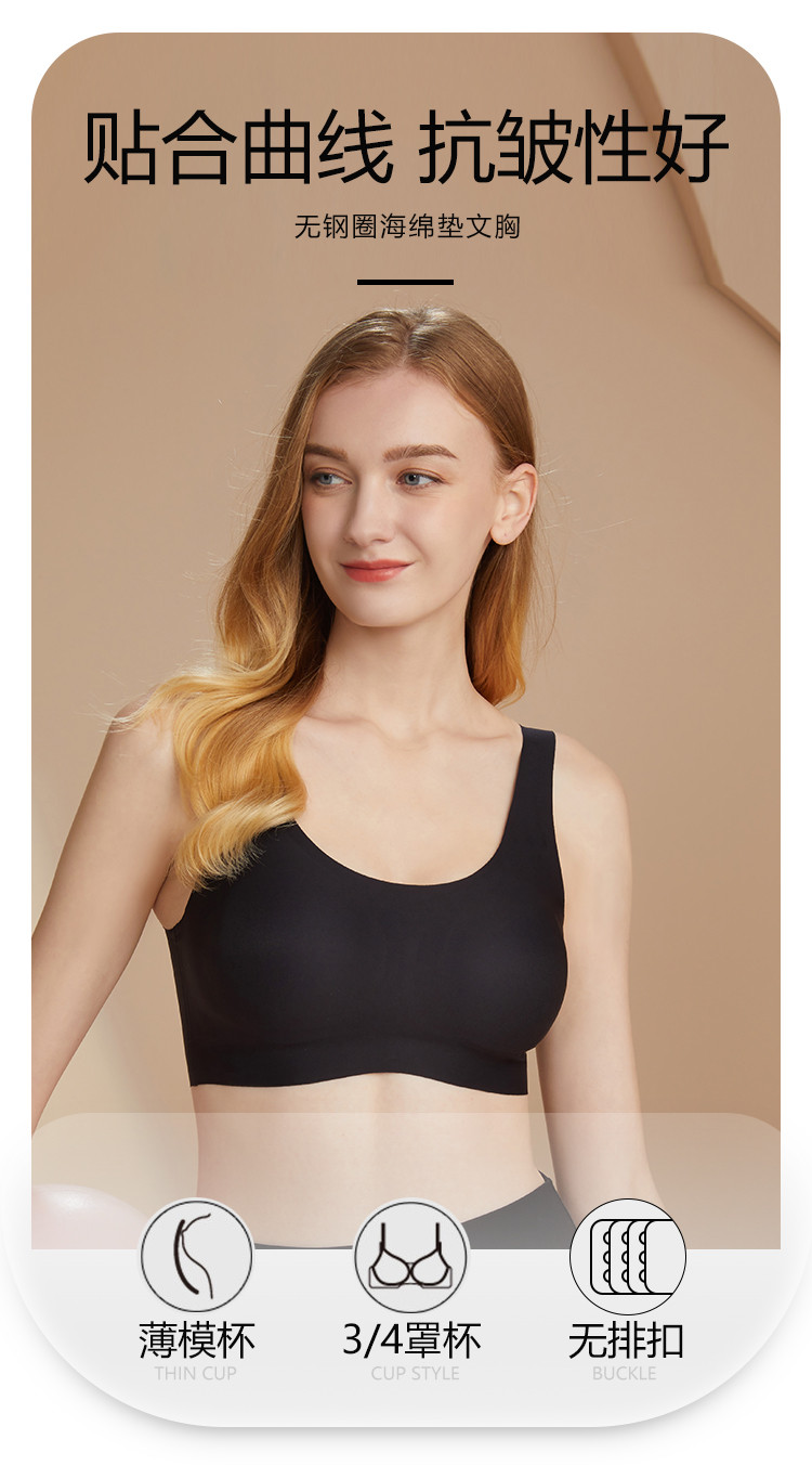 商品名称:【裸感无痕】文胸无钢圈聚拢收副乳背心式运动内衣夏季薄款女美背 140299