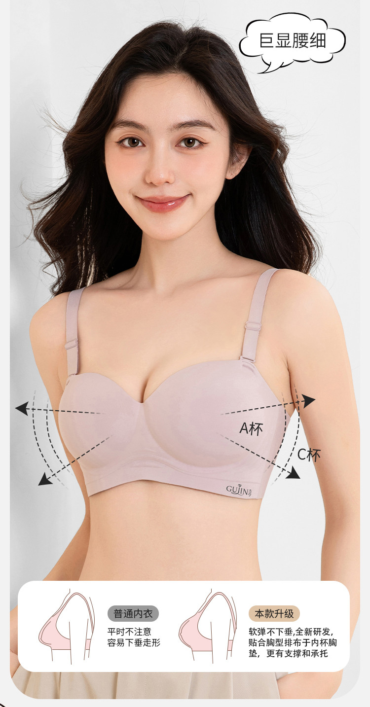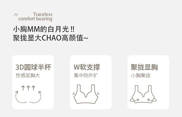 商品名称:【外扩显大】内衣女小胸立体无痕软支撑蜜桃漫画胸美背文胸罩女士 918155