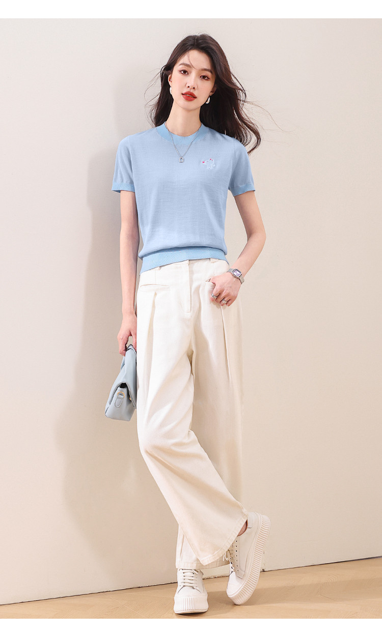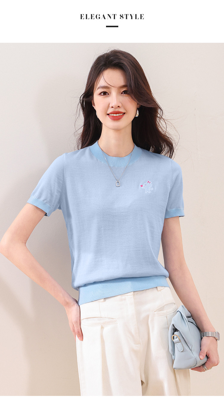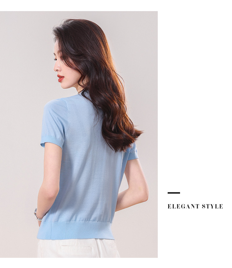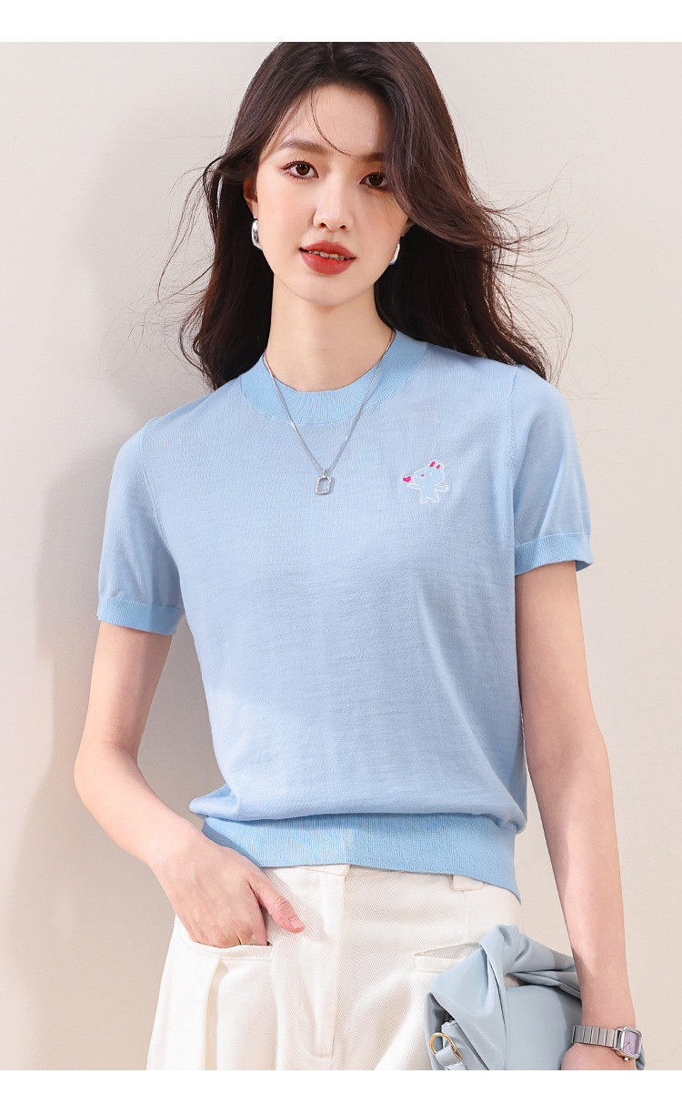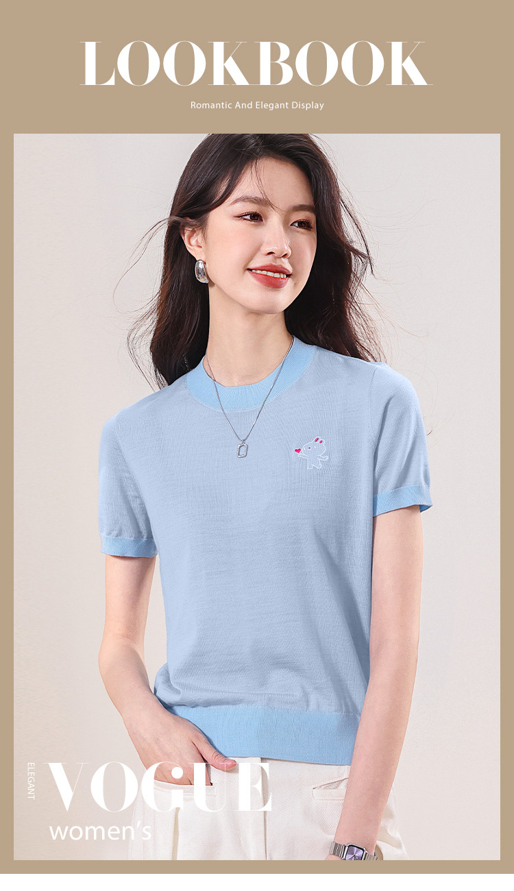 【vipIP联名】纯色圆领T恤短袖精纺100%羊毛针织衫女 776275
