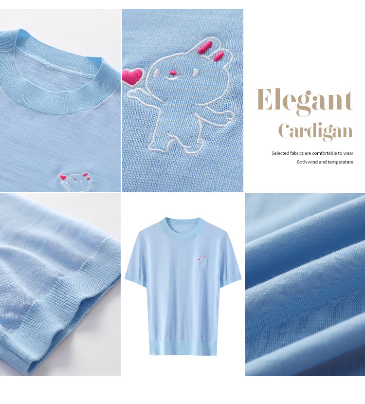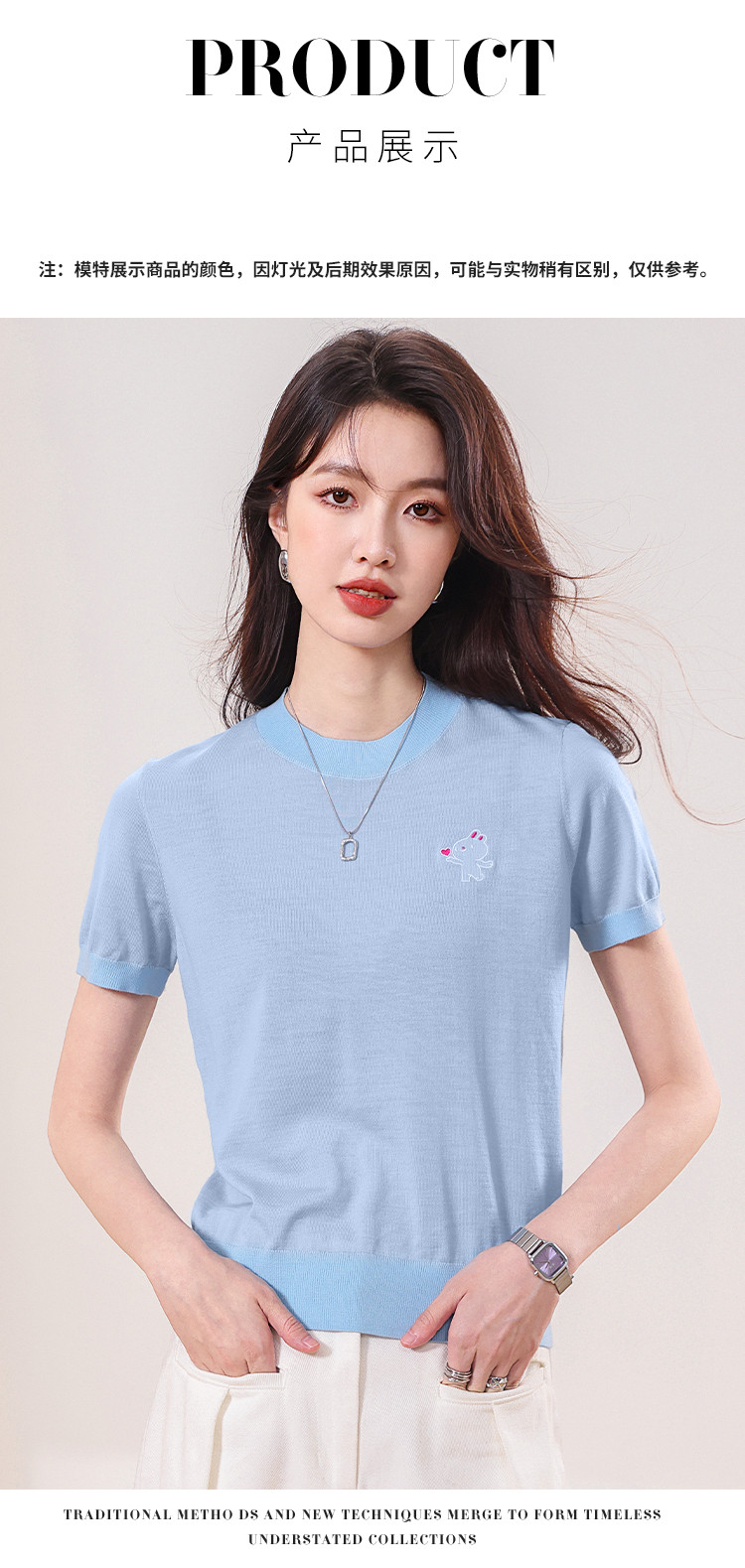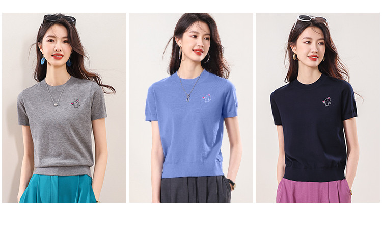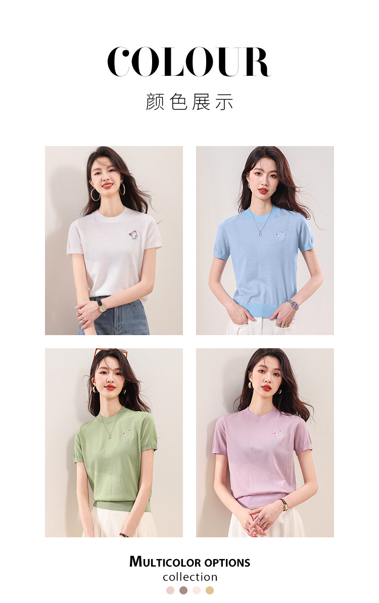 商品名称:【vipIP联名】纯色圆领T恤短袖精纺100%羊毛针织衫女 776275