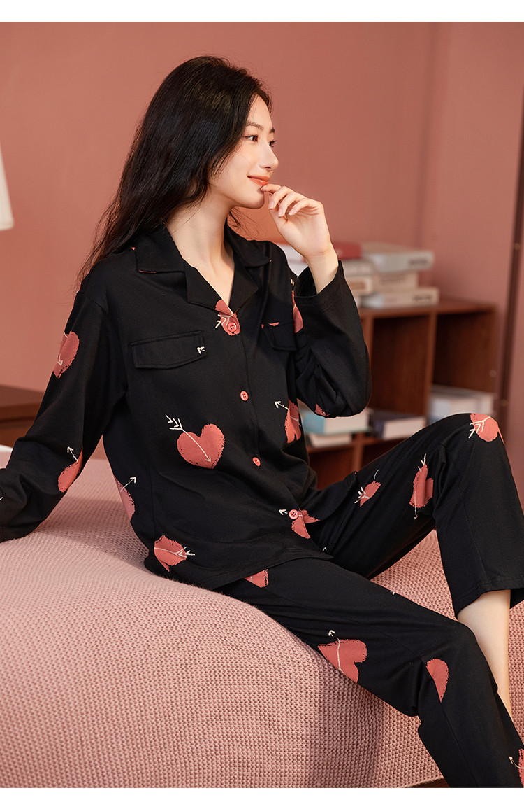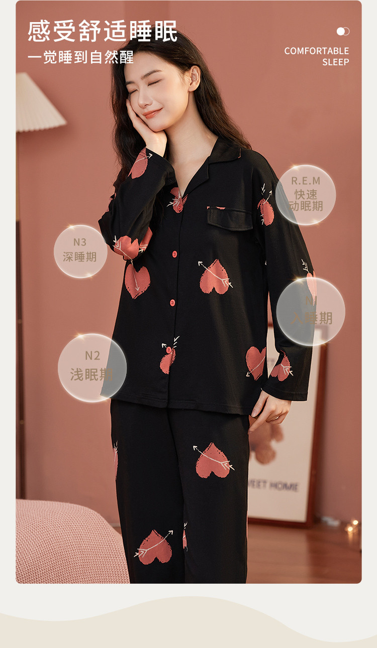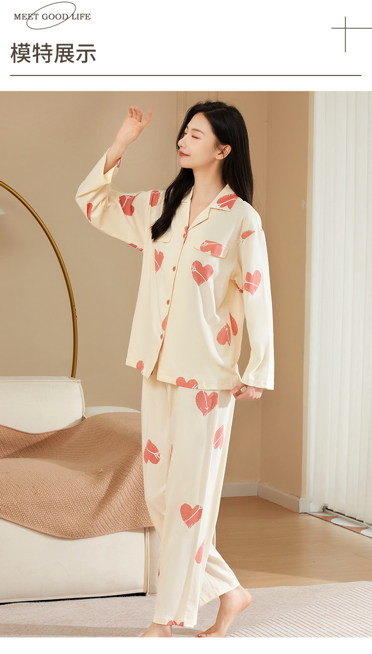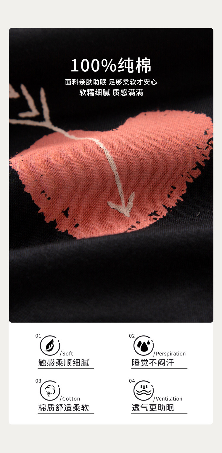 【100%棉】撞色丘比特舒适柔软爱心纯棉睡衣女士家居服套装 878475