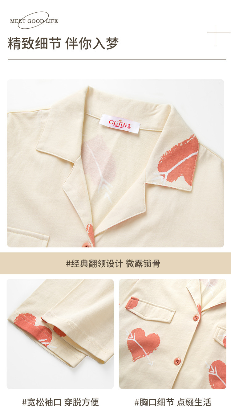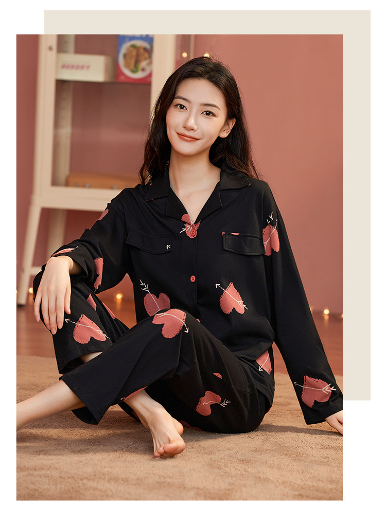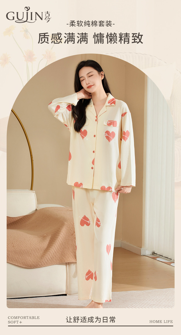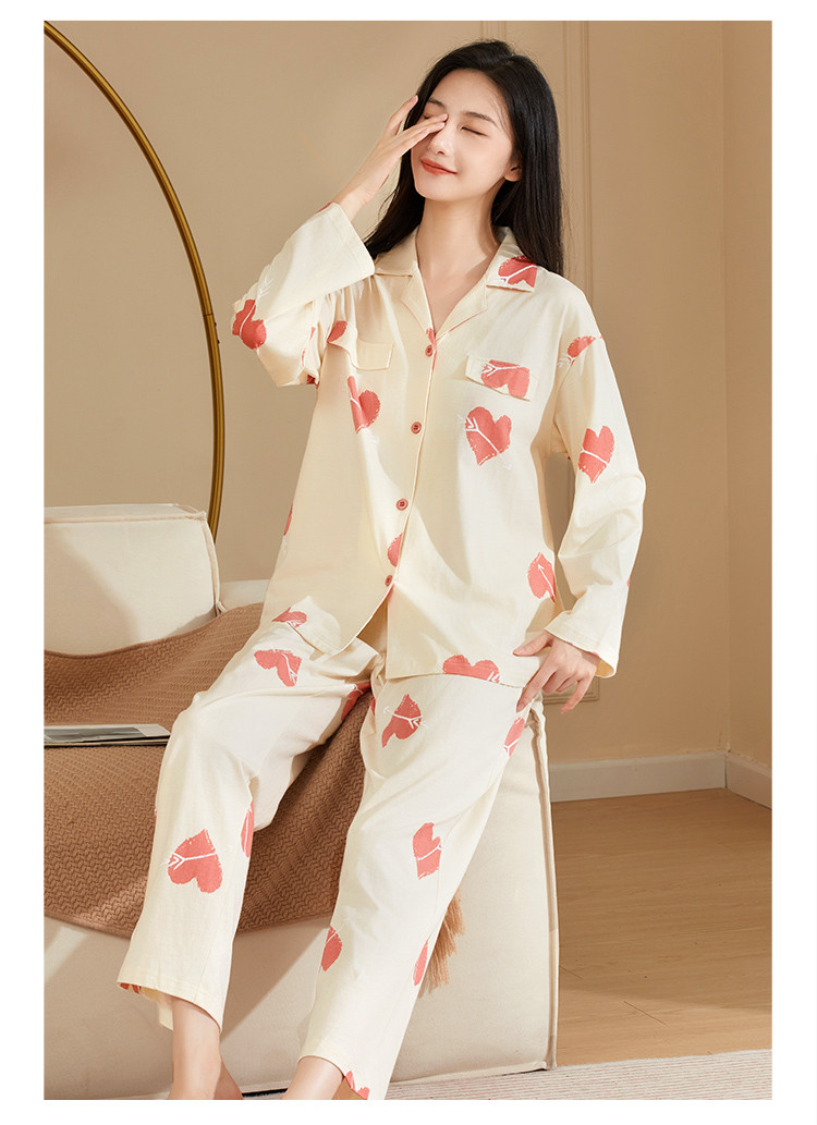 【100%棉】撞色丘比特舒适柔软爱心纯棉睡衣女士家居服套装 878475