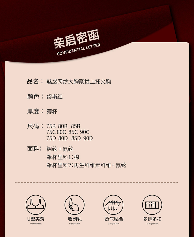 商品名称:【大胸薄款防走光】大胸显小轻薄透气收副乳防下垂性感蕾丝内衣 067870