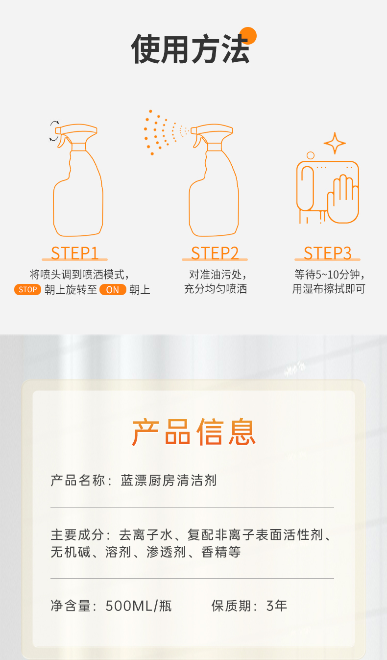 商品名称:蓝漂厨房清洁剂500g*3瓶