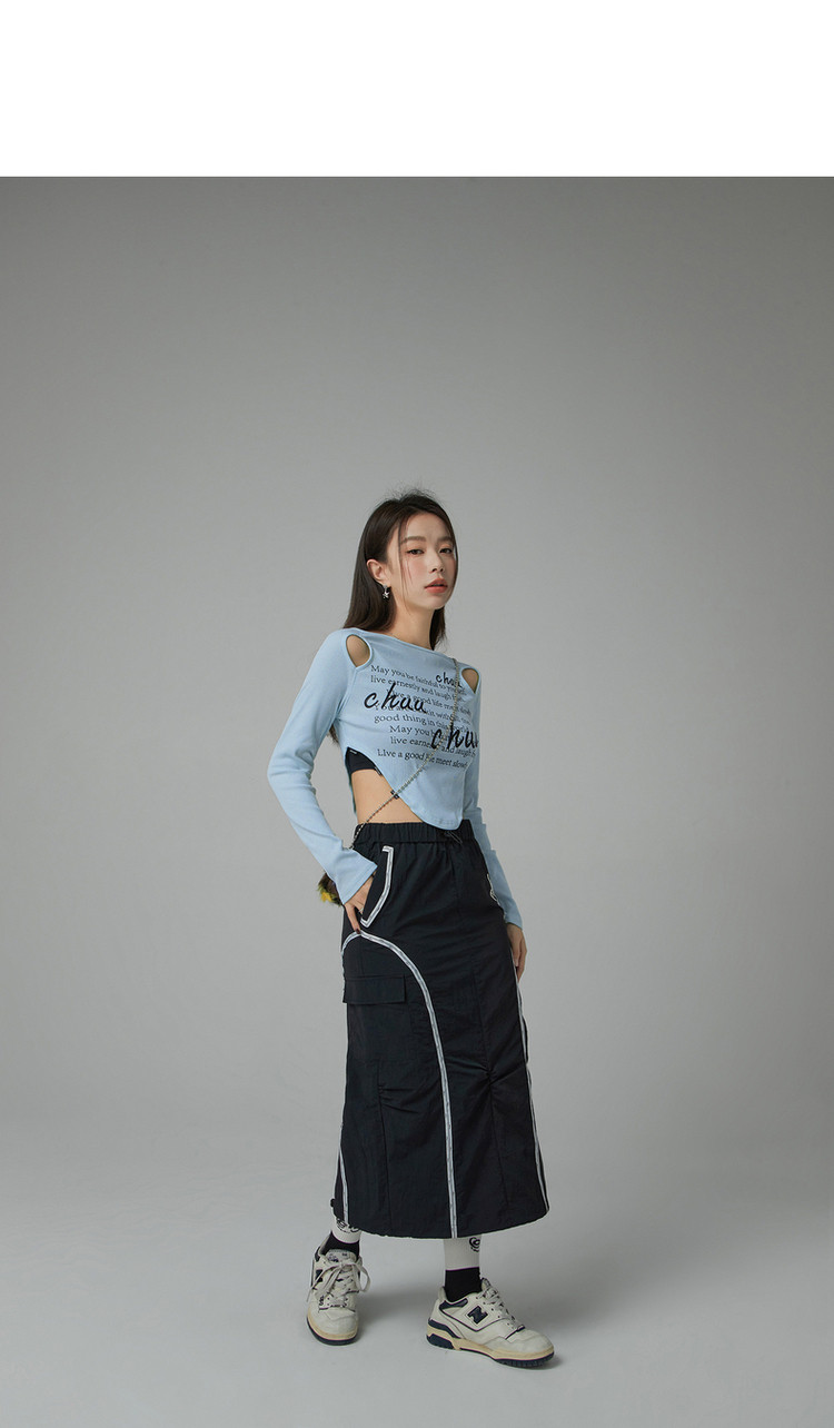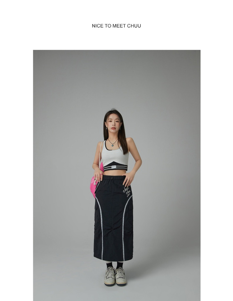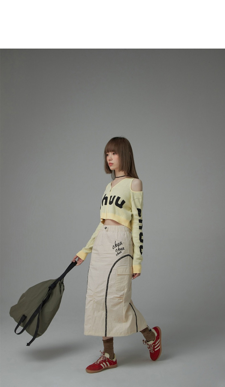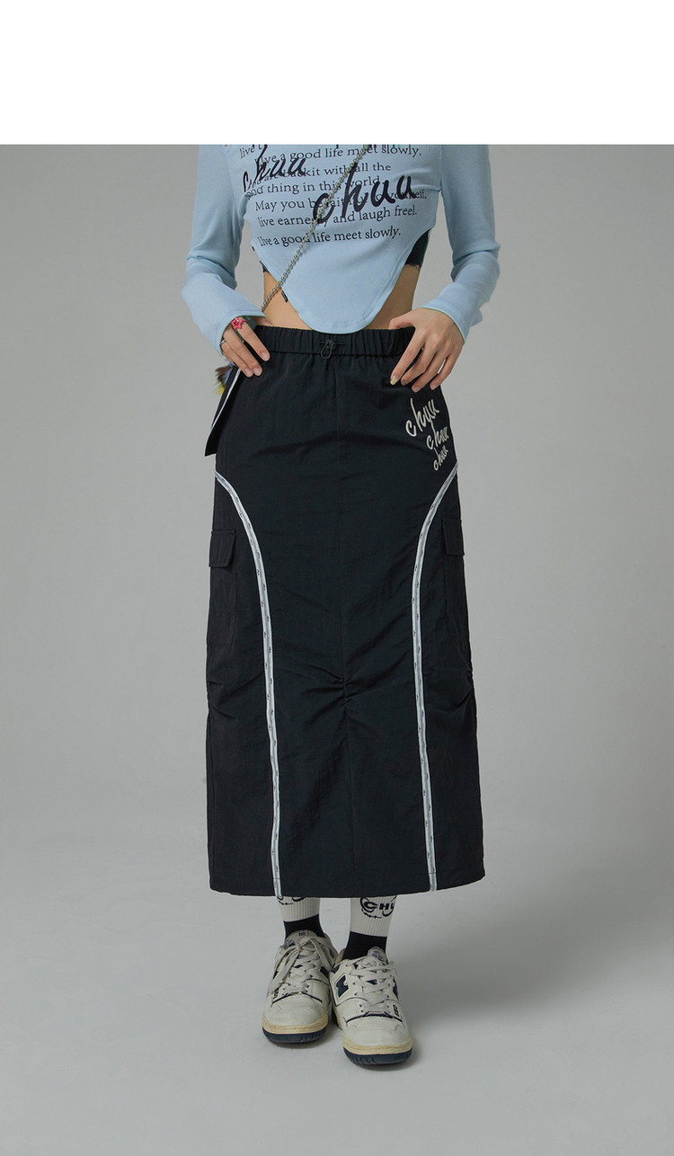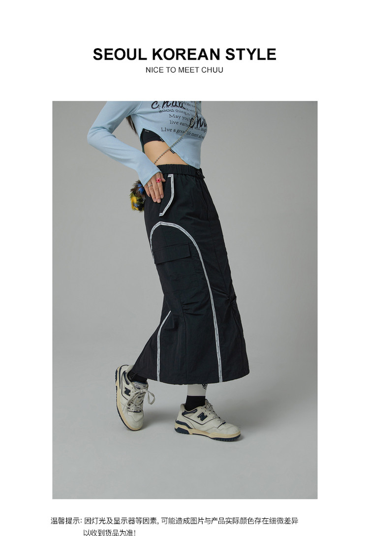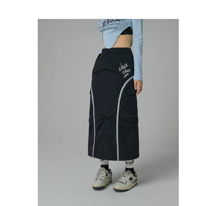 商品名称:高腰字母半身裙女春秋运动风简约直筒休闲长裙 835283