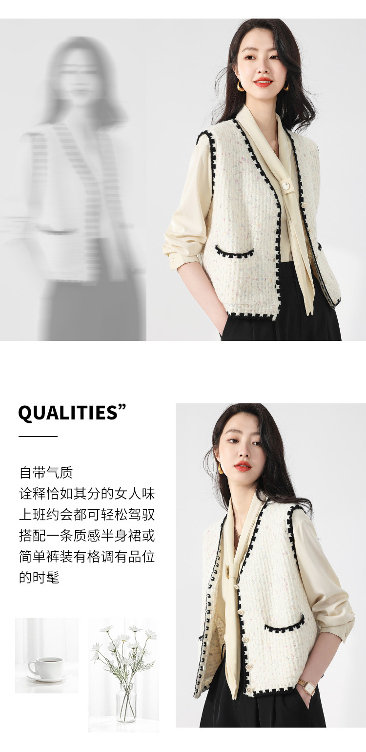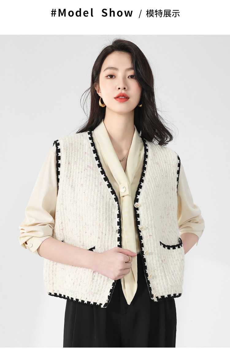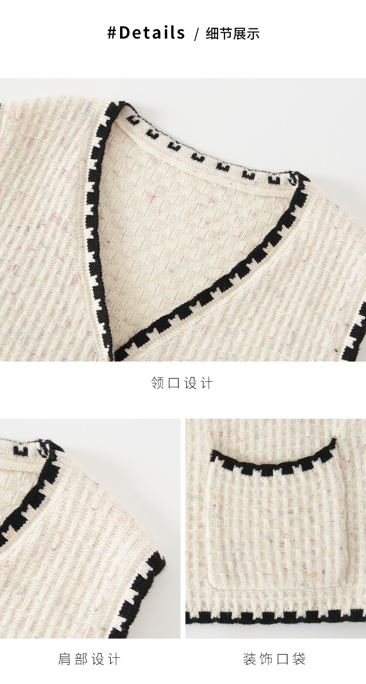 商品名称:【100%绵羊毛】小香风V领针织衫女打底背心小开衫坎肩马夹 121811