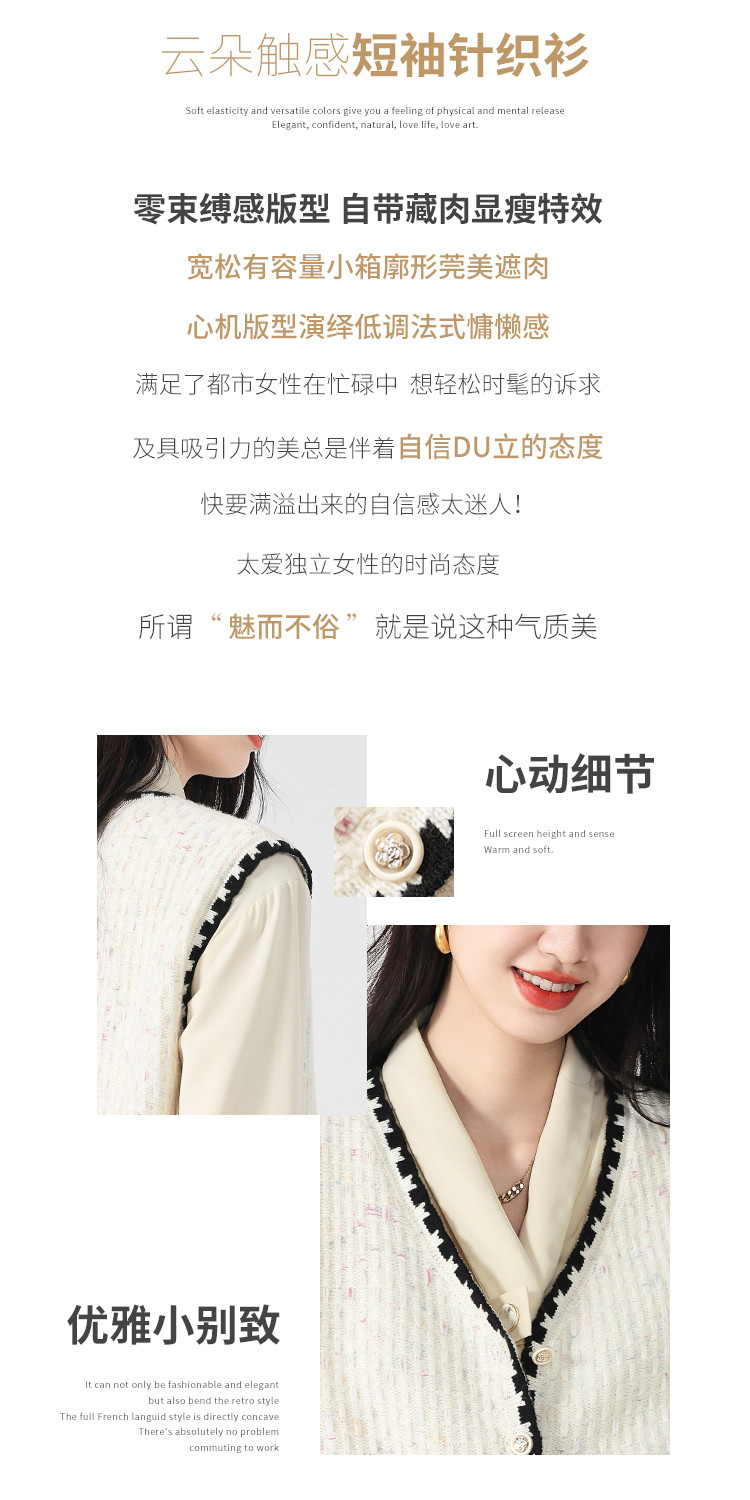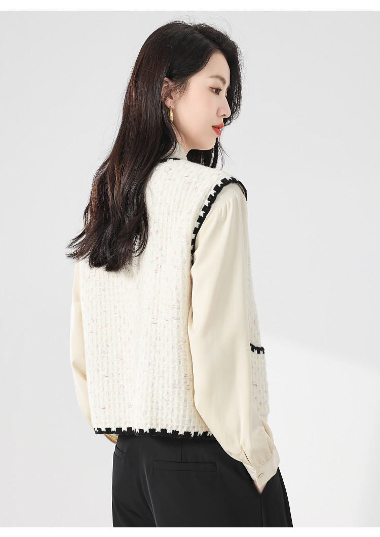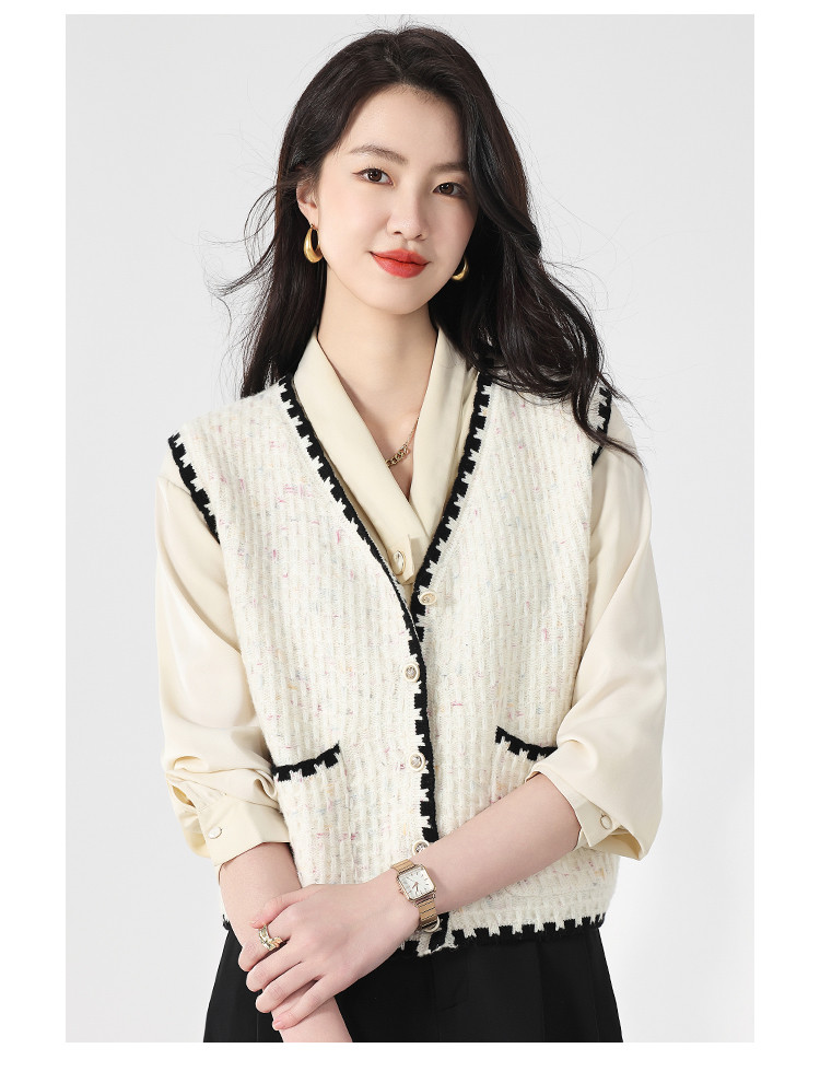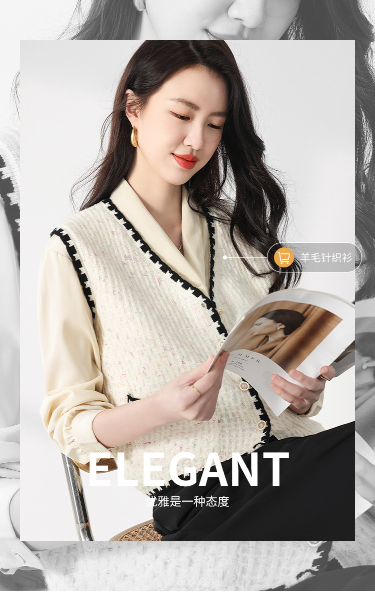 商品名称:【100%绵羊毛】小香风V领针织衫女打底背心小开衫坎肩马夹 121811