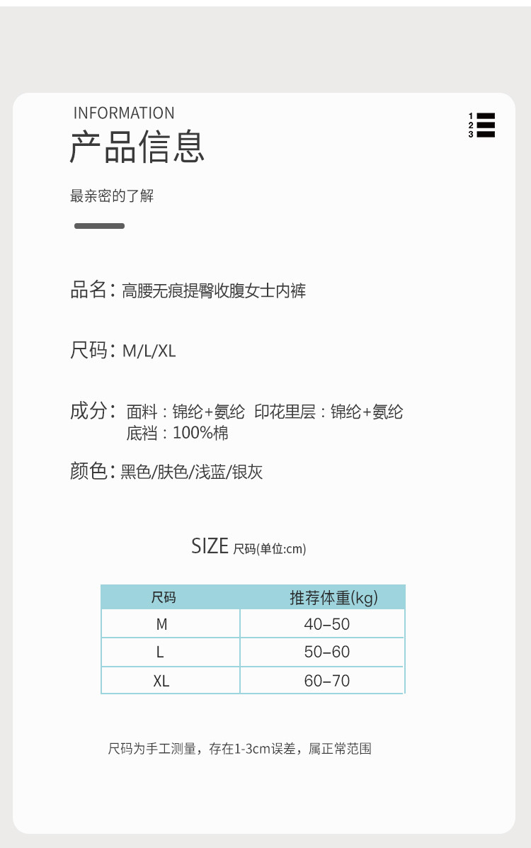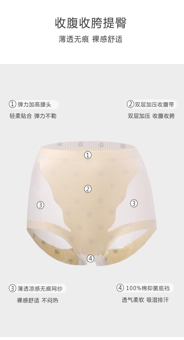 商品名称:【3A抑菌纯棉裆】2条高腰收腹提臀无痕100%纯棉女士内裤女 665182