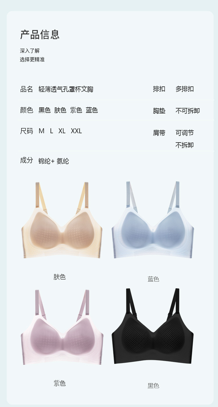 商品名称:【轻薄透气洞洞杯】内衣女薄款无痕美背裸感无钢圈聚拢侧收文胸罩 771998