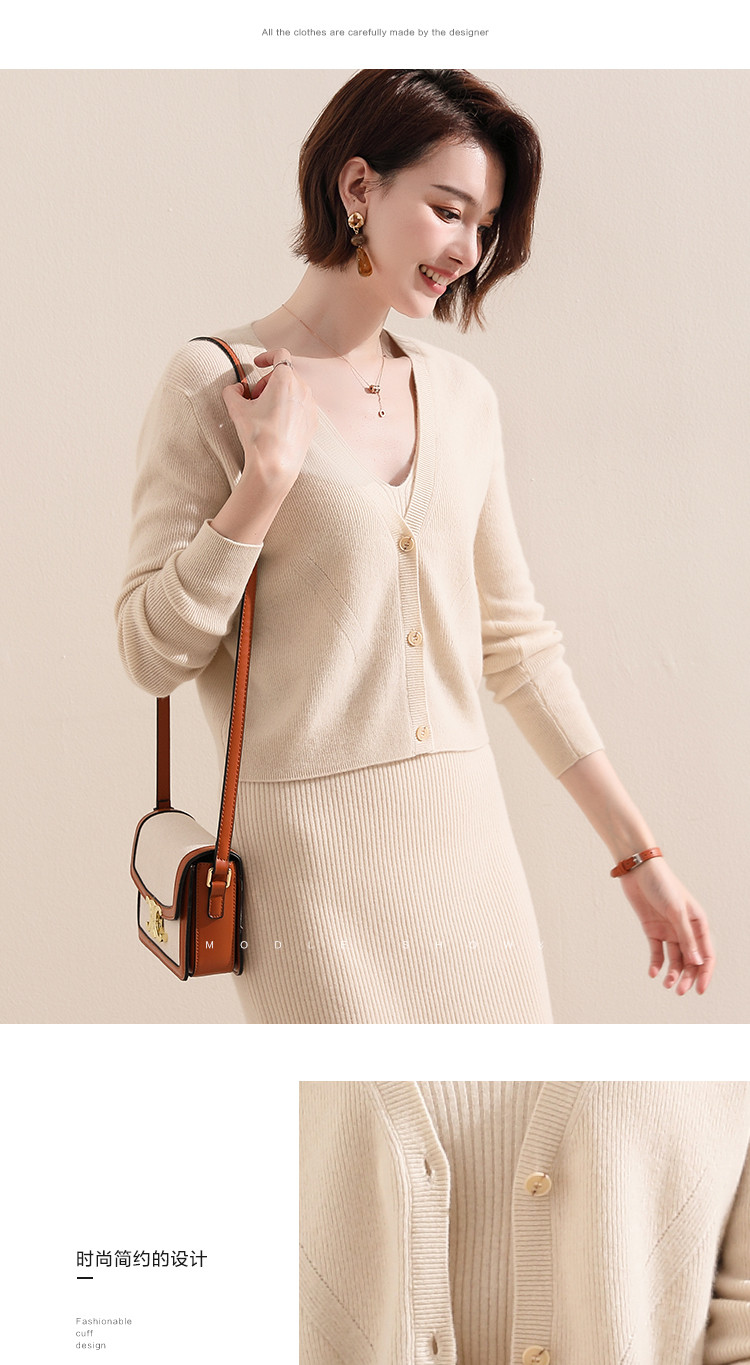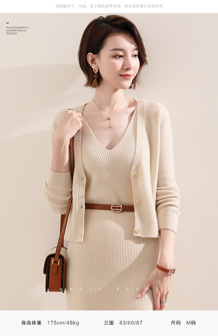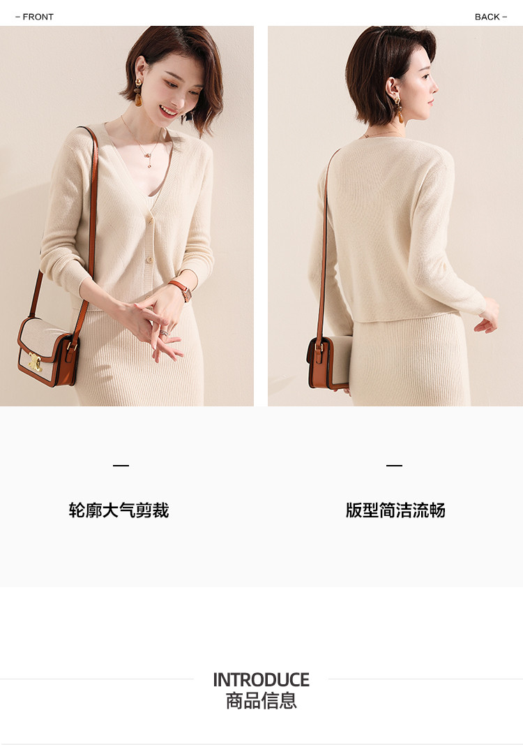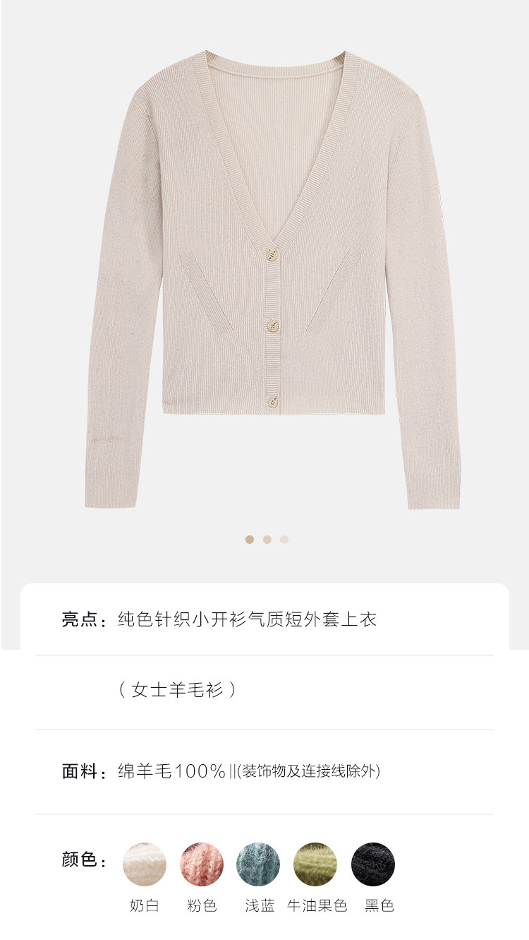 商品名称:【100%绵羊毛】纯色针织小开衫减龄短毛衣外套上衣羊毛衫 454547