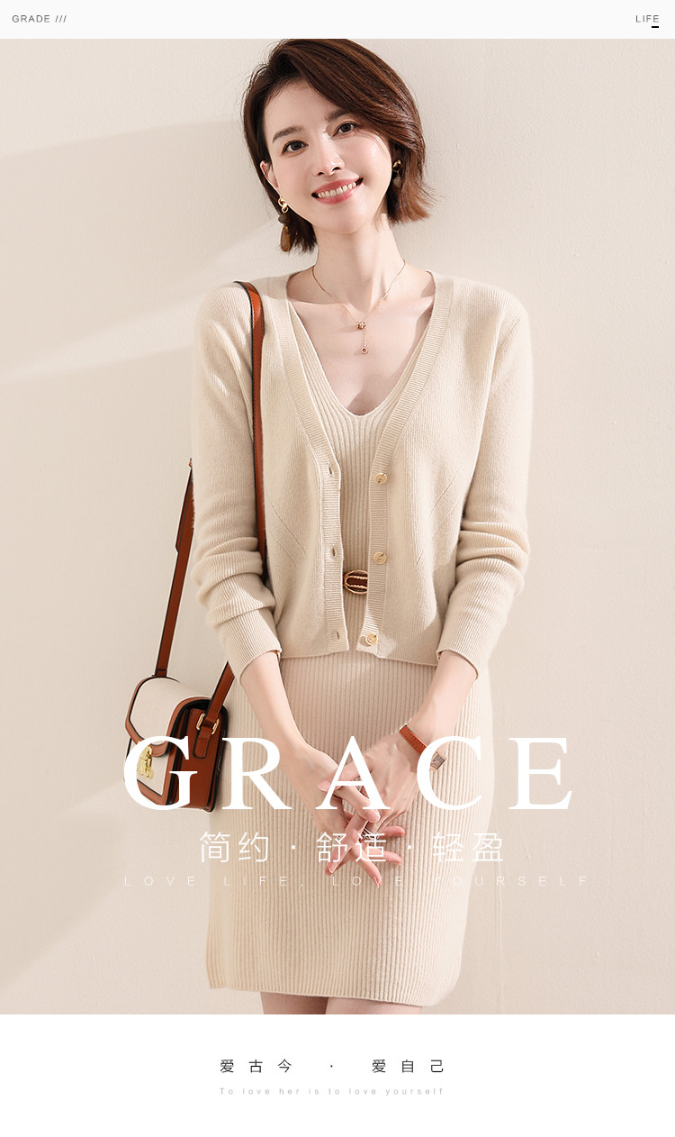 春季含绵羊毛复古小香风通勤修身针织连衣裙小个子 659611