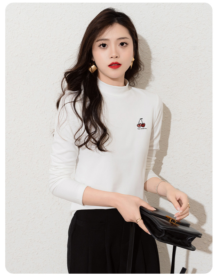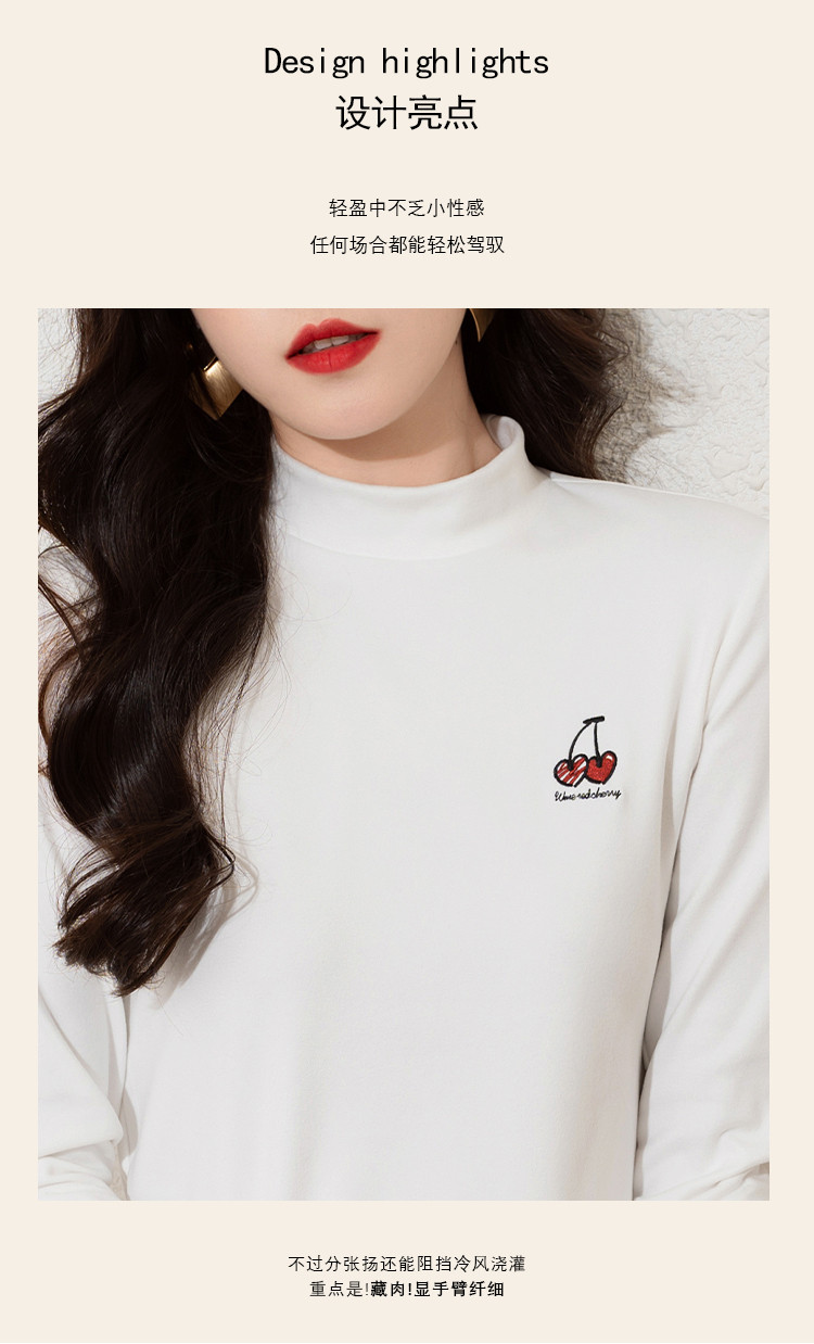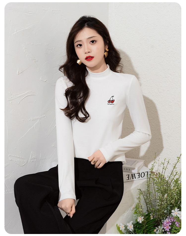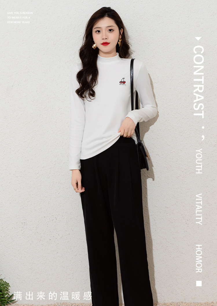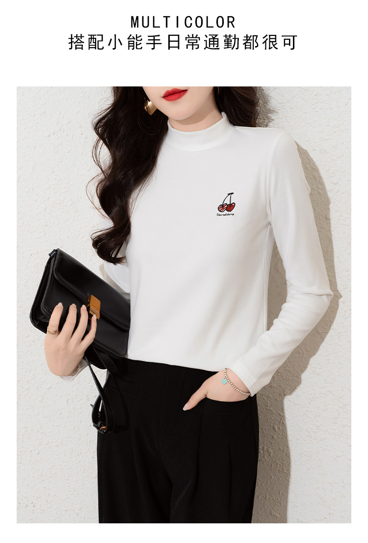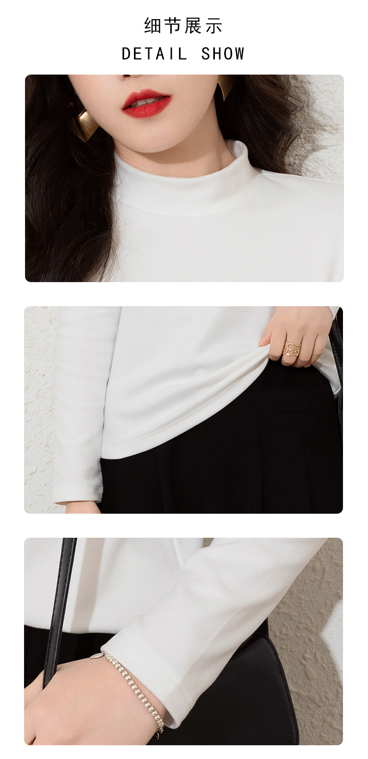 商品名称:修身透气打底衫商务通勤气质优雅时尚印花半高领女式春秋长袖T恤 605825